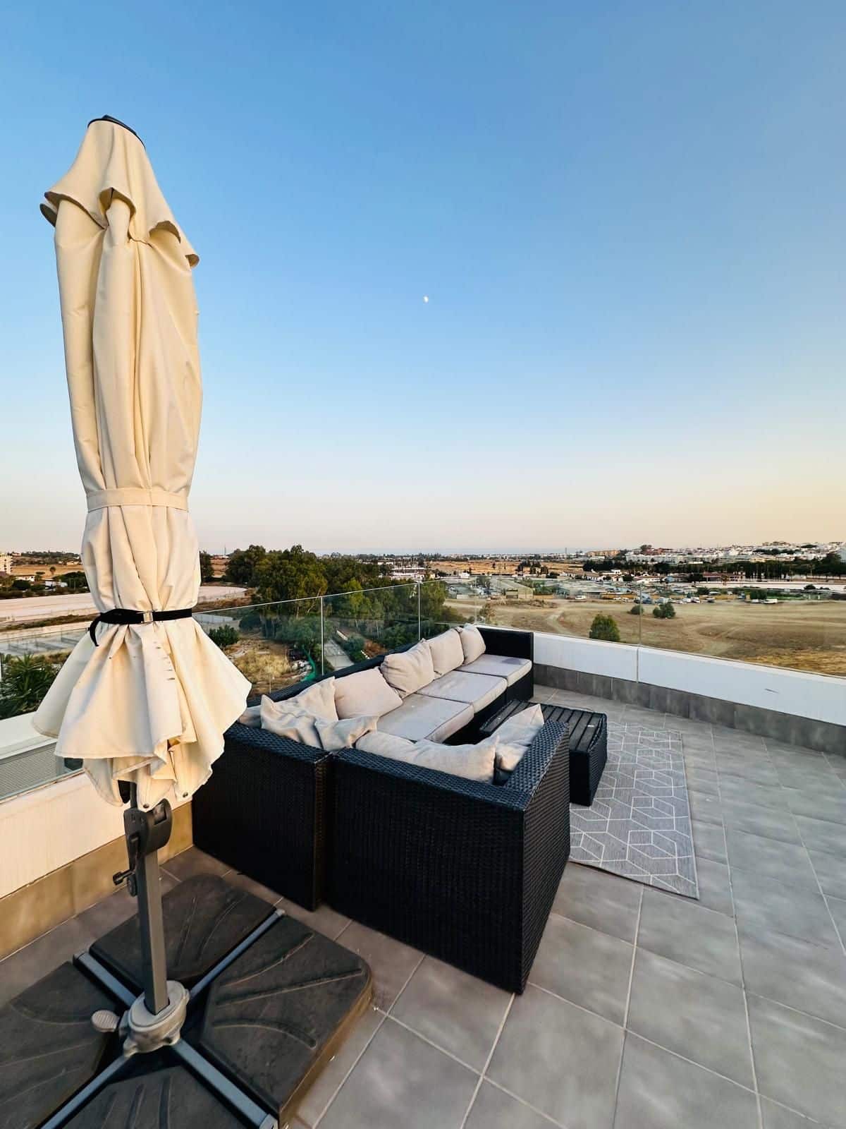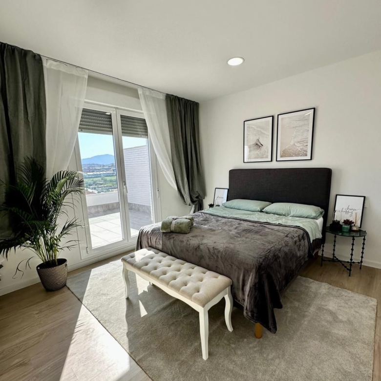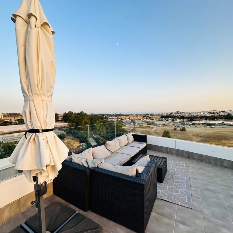 This spacious three bedroom and two bathroom, corner penthouse offers panoramic views towards the sea and mountains from its large terrace area.