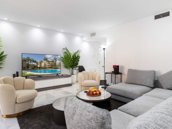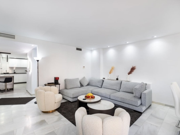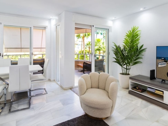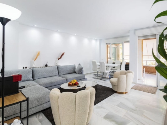 immaculately presented and recently renovated apartment in the sought after frontline beach urbanisation of Residencial Dali in La Carihuela. This light and bright first floor apartment has 3 generously proportioned double bedrooms, 2 bathrooms and fully fitted kitchen with built-in Bosch appliances. Apartment has marble flooring and air-con inbuilt with solar panels. Great complex views from terrace.