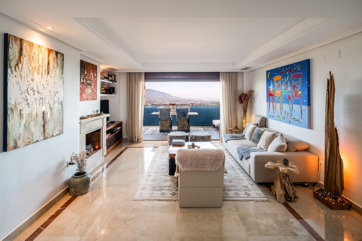 Spanning over 250m2 across two levels, this penthouse is designed to maximise space, comfort, and most importantly, its spectacular panoramic views. From the moment you step through the entrance, you are greeted by an uninterrupted view stretching across the mountains, golf courses, and down to the Mediterranean Sea. The view is simply breathtaking, making this property truly one of a kind.
