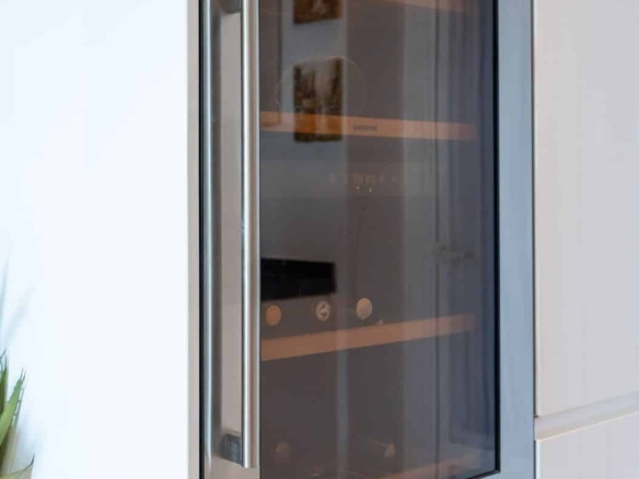 The bright and spacious open-plan living area is designed for modern comfort, featuring a cozy fireplace and direct access to the expansive terrace – the perfect spot to soak in the stunning scenery. With glass curtains, this space can be enjoyed year-round, whether you prefer an open-air feel in summer or a cosy retreat in winter. The contemporary open-plan kitchen is seamlessly integrated, making it an ideal setting for both everyday living and entertaining.