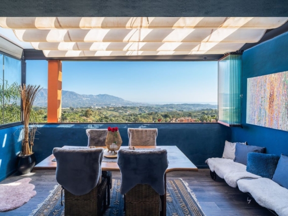We’re proud to present this rare and exceptional duplex penthouse, nestled in the serene natural biosphere of El Soto de La Mairena. Set within UNESCO-protected land, this unique property offers a tranquil retreat surrounded by unspoiled nature, yet is just a 10-minute drive to Elviria and the finest beaches of the Costa del Sol.