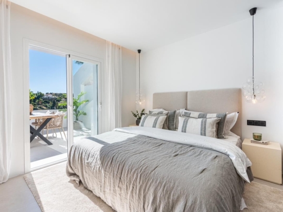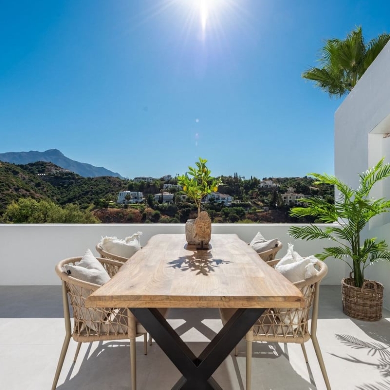 Welcome to this stunning, newly renovated middle floor apartment in the prestigious El Mirador 2, La Quinta, Benahavis. it features a 100 sqm living area, a spacious terrace with breathtaking mountain and sea views, 3 bedrooms, and 2 bathrooms. The bright living room opens onto the terrace, perfect for relaxation and entertaining. The master bedroom includes an en-suite bathroom and terrace access, providing a private, tranquil atmosphere.