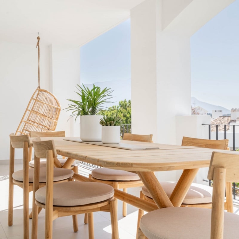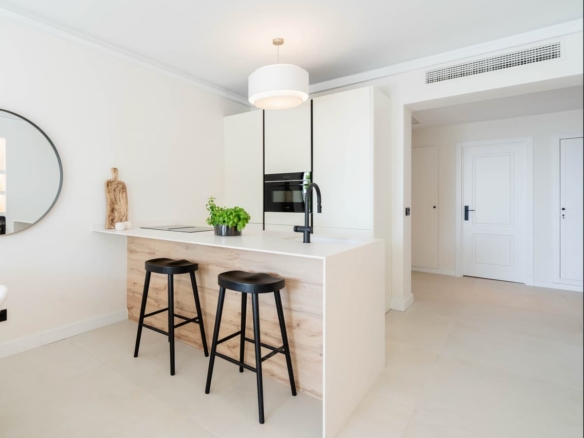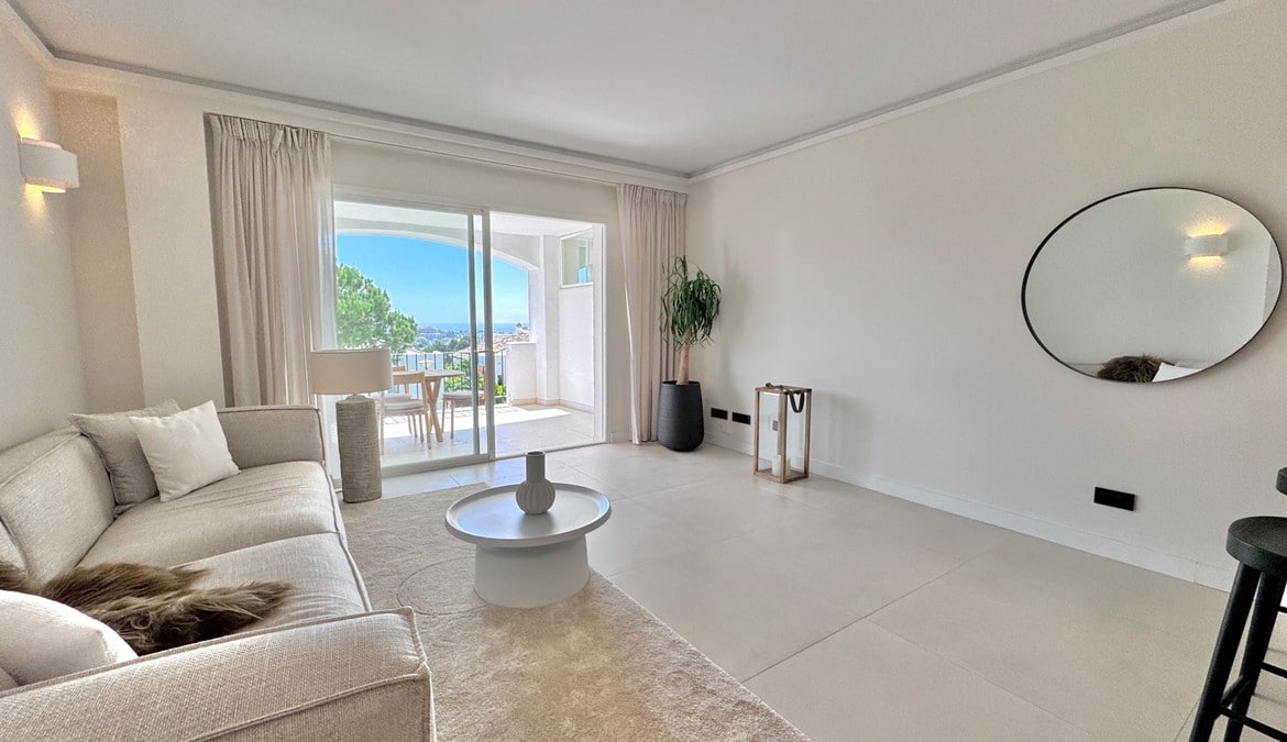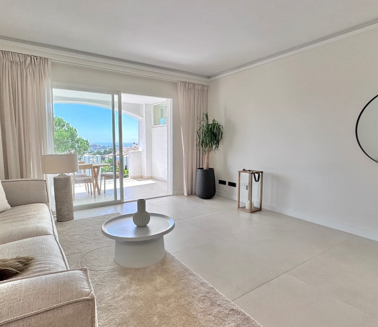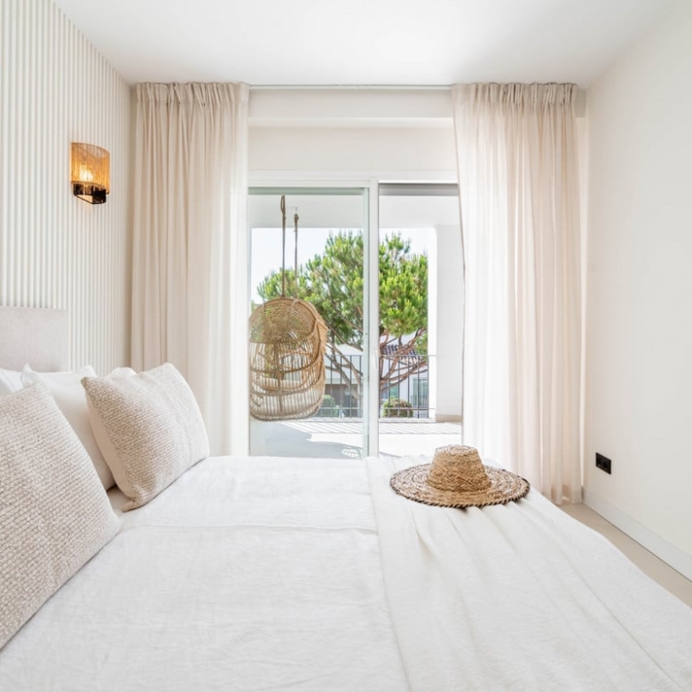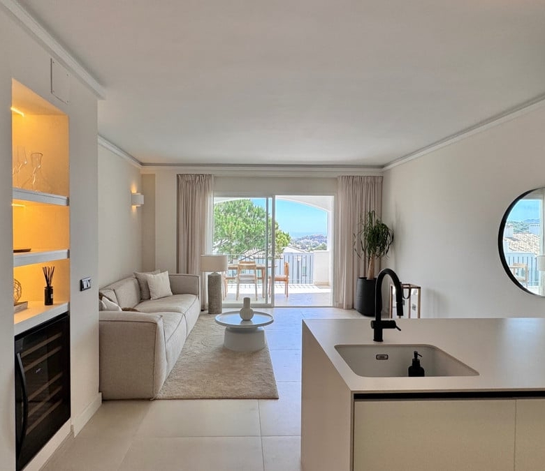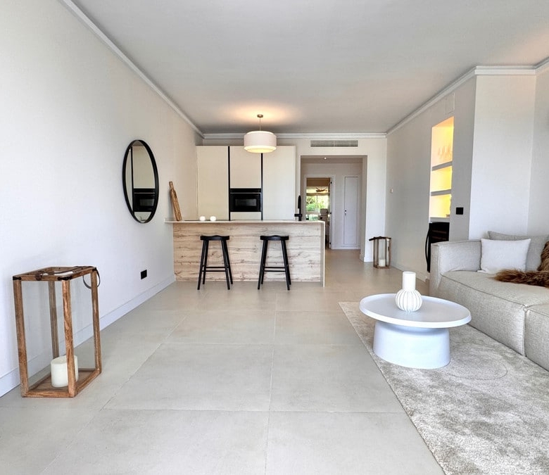 Discover this stunning 3 bedroom, 3 bathroom apartment nestled within the a gated community located in the prestigious La Quinta area. Meticulously renovated and beautifully decorated in a Scandi design, the apartment exudes a modern elegance with fresh tones and natural materials throughout. An additional convenient extra shower room/laundry adds practicality to this luxurious home.