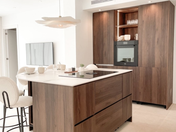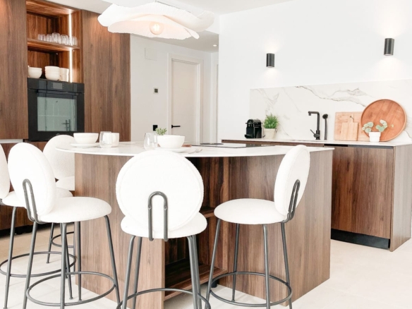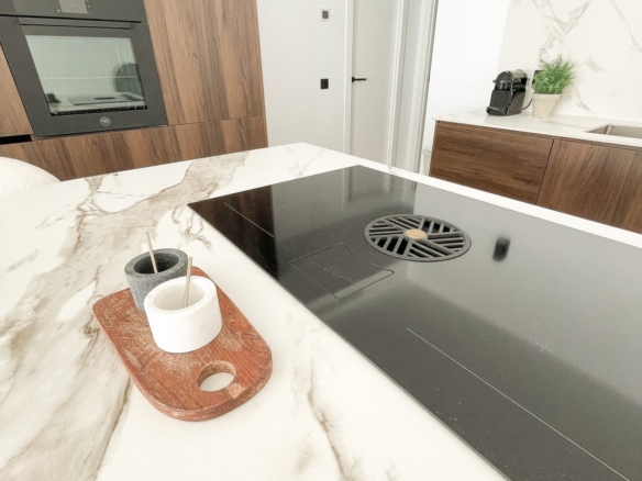 Bertazzoni appliances with full touch displays further elevate the property, as do the elegant matte black light switches, doorknobs, and faucets. The cherry on top of this exceptional penthouse is undoubtedly the stunning sea views it commands.