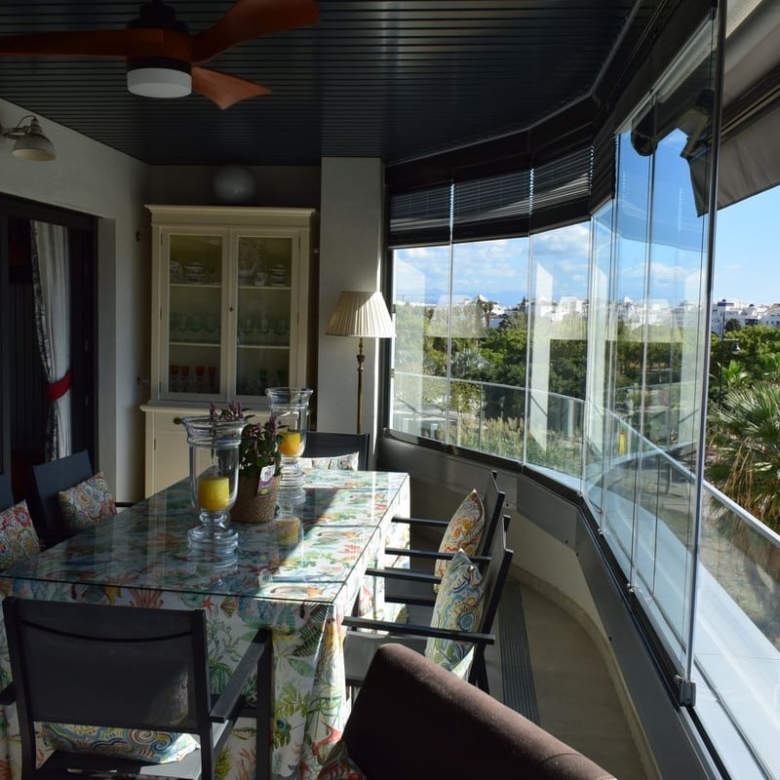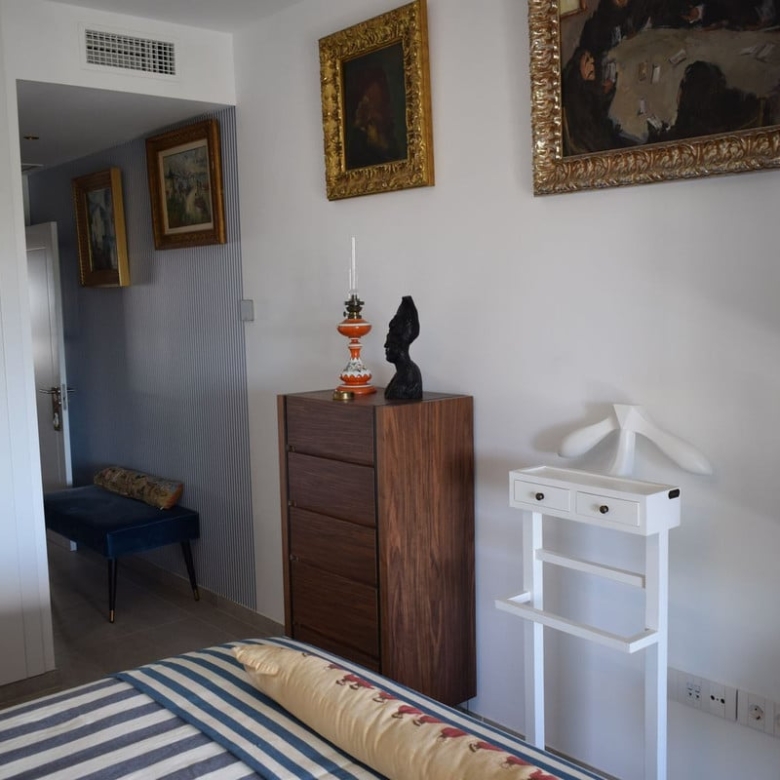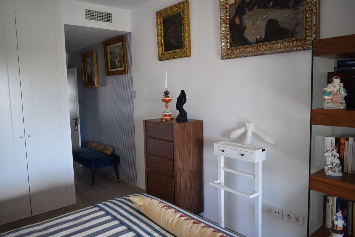 We present this magnificent apartment located between Playamar and Los alamos, just 500 meters from the beach and the train station for more comfort. it is a luxury development with only 16 neighbors, offering an exclusive and quiet atmosphere, built in 2023 with a communal pool and children’s play area. The apartment consists of three double bedrooms, one of them en suite and with two full bathrooms, it has a terrace of about 24 m2 facing south with unobstructed views from where you can enjoy the tranquility and its views all year round thanks to the Lumon enclosure, the very spacious living room with two rooms and the American-style kitchen with all appliances, laundry room and clothesline. The apartment has aerothermal energy ensuring an efficient and environmentally friendly heating and cooling system, home automation controls the lights, blinds, air conditioning and alarm from the main control or from your Smartphone for your comfort and home security, ceramic floors, aluminum exterior enclosure with Climalit, guaranteeing thermal and acoustic insulation Centralized air conditioning and alarm, all focused on the comfort and functionality of the owners, in addition the two secondary bedrooms are north facing and the living room, kitchen and suite are south facing, achieving a lot of light and optimal ventilation of the house. it is sold with all the designer furniture ready for you to move in without worries. it includes a 15 m2 underground parking space and a 4 m2 storage room.