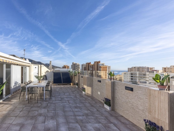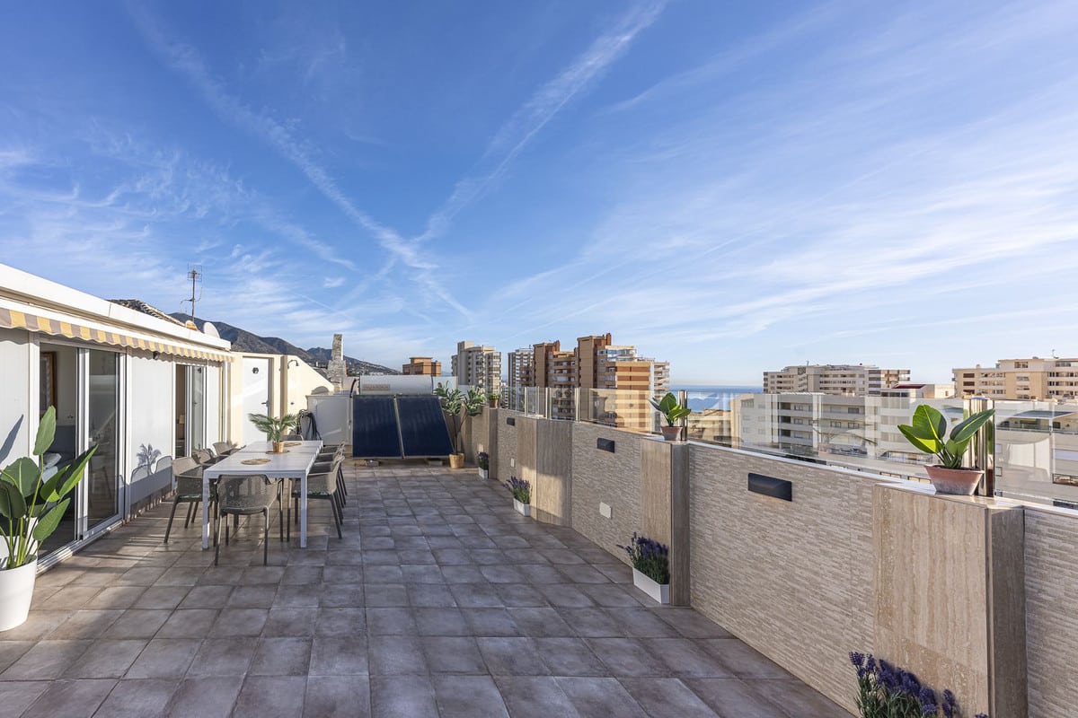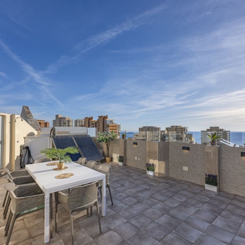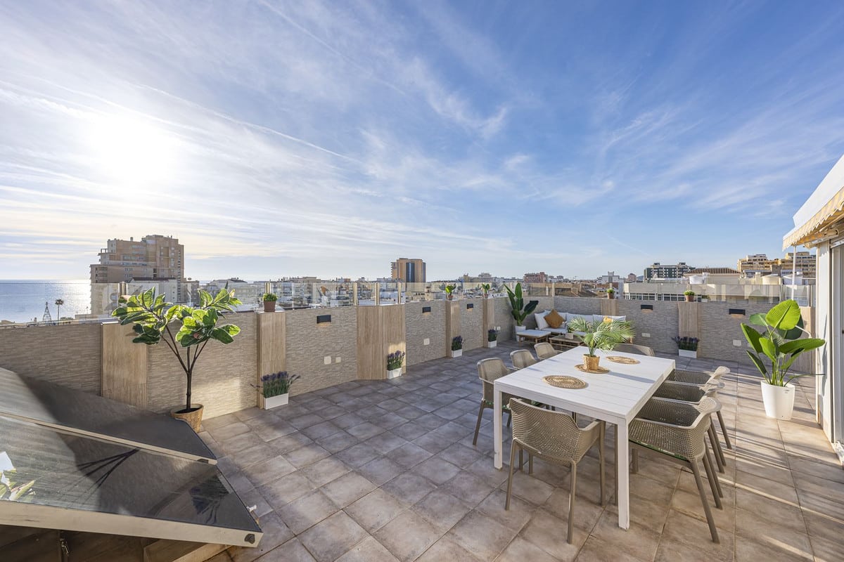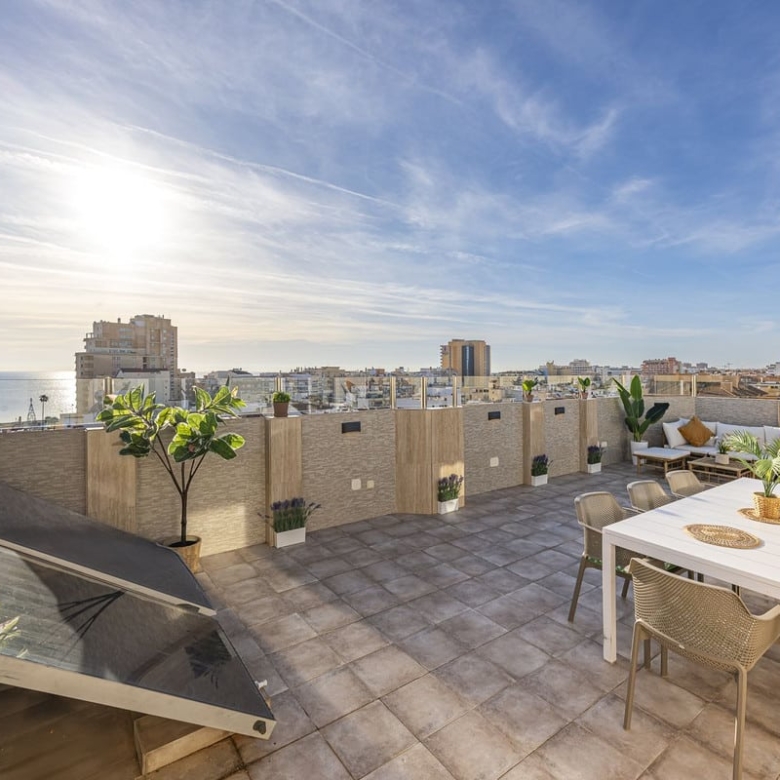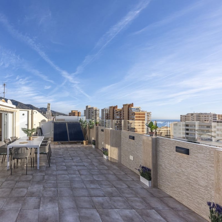Exclusive opportunity in Los Boliches! An impressive penthouse for sale ideal for those seeking luxury and comfort in a privileged location. This wonderful penthouse is distributed over two floors. The first floor consists of a spacious living-dining room with direct access to the spacious glazed terrace, ideal for enjoying the wonderful views at any time of the year. Modern kitchen with central island fully equipped with state-of-the-art appliances integrated into the living room, forming a single space. it has two spacious and bright rooms perfect for resting, one of them with a beautiful and practical dressing room. Two bathrooms with shower and double sink in a contemporary and elegant style. Private access with direct elevator to the upper floor where you can enjoy a spacious solarium with areas for sunbathing, outdoor dining and spectacular views. Large and sunny living room with kitchenette, bright double bedroom and modern bathroom with shower. This penthouse is located in a gated community that offers maximum security and tranquility. it also has a community pool to enjoy the good weather. Don’t miss this unique opportunity to live in a dream penthouse in Los Boliches!