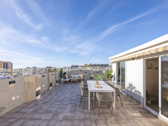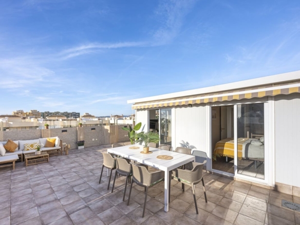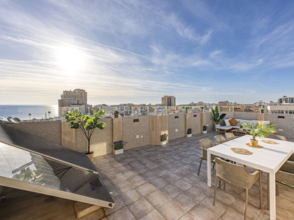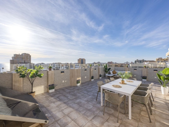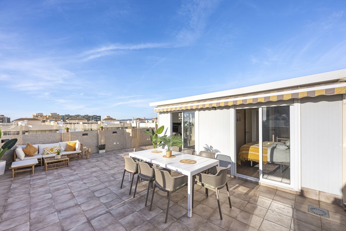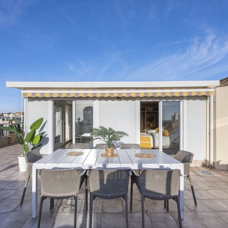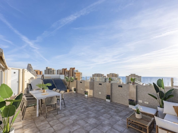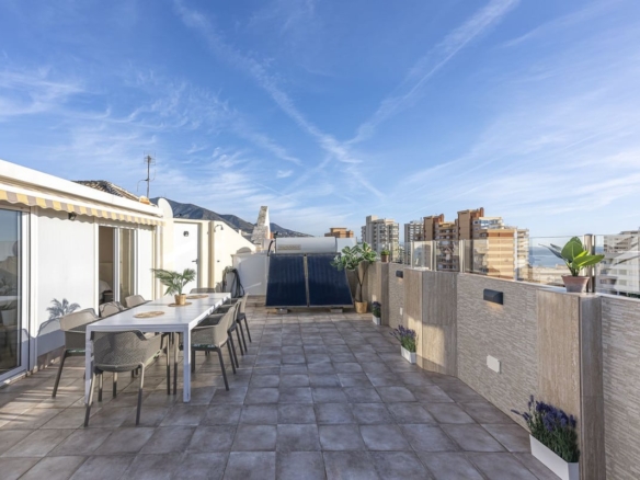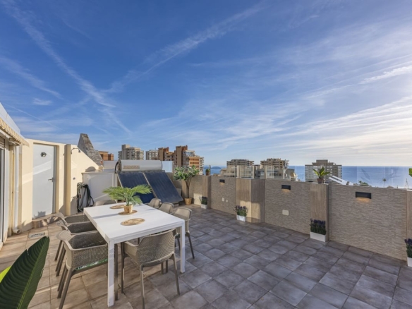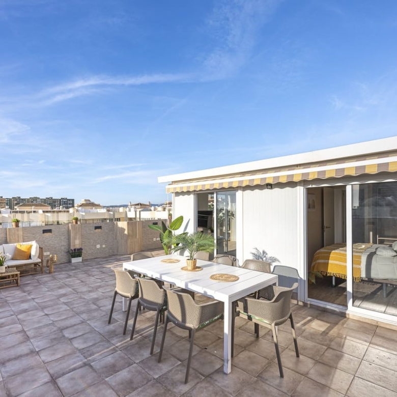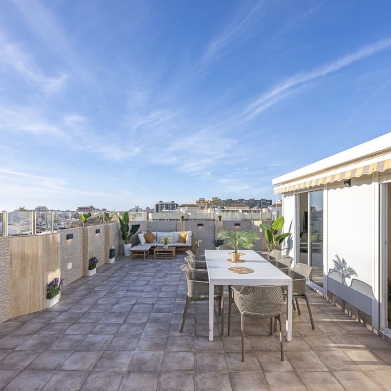 Exclusive opportunity in Los Boliches! An impressive penthouse for sale ideal for those seeking luxury and comfort in a privileged location. This wonderful penthouse is distributed over two floors. The first floor consists of a spacious living-dining room with direct access to the spacious glazed terrace, ideal for enjoying the wonderful views at any time of the year. Modern kitchen with central island fully equipped with state-of-the-art appliances integrated into the living room, forming a single space. it has two spacious and bright rooms perfect for resting, one of them with a beautiful and practical dressing room. Two bathrooms with shower and double sink in a contemporary and elegant style. Private access with direct elevator to the upper floor where you can enjoy a spacious solarium with areas for sunbathing, outdoor dining and spectacular views. Large and sunny living room with kitchenette, bright double bedroom and modern bathroom with shower. This penthouse is located in a gated community that offers maximum security and tranquility. it also has a community pool to enjoy the good weather. Don’t miss this unique opportunity to live in a dream penthouse in Los Boliches!