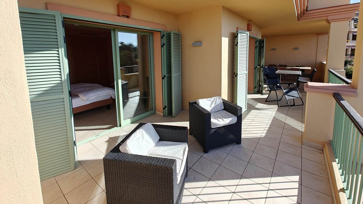 Unique opportunity, discover this rare gem in the prestigious Los Flamingos Golf, a spacious 3-bedroom, 3-bathroom corner apartment. The Urbanisation has 7 blocks wit 96 homes and only six 3 bedroom corners in the entire complex. This apartment is better than most of the Penthouses with everything on a single level, living/dining room and 2 off the bedrooms with direct access to the terrace. Enjoy an expansive covered terrace that provides breath-taking panoramic sea views and stunning mountain views, creating a serene and picturesque living experience. The apartment’s corner location ensures maximum privacy, natural light, and an open, airy feel.