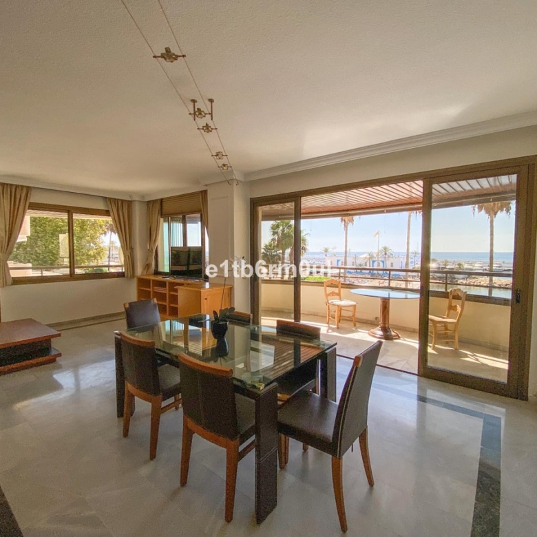 Location · Location · Location. This apartment could not have a better location. With panoramic unobstructed sea views, and in addition, mountain views this spectacular apartment is distributed in a spacious living room with access to the terraces of with spectacular views of the sea and the mountains, three bedrooms, three bathrooms, two en-suite, fully fitted kitchen. Located in one of the best areas of Marbella is this exclusive south-facing building, the apartments are distributed one per floor. it is a great opportunity to acquire a unique home on the seafront of Marbella both to live all year round or as a vacation rental, close to all services, restaurants, shops, a shopping center, and just 5 minutes from the old town. it is sold with a car parking space and storage room.