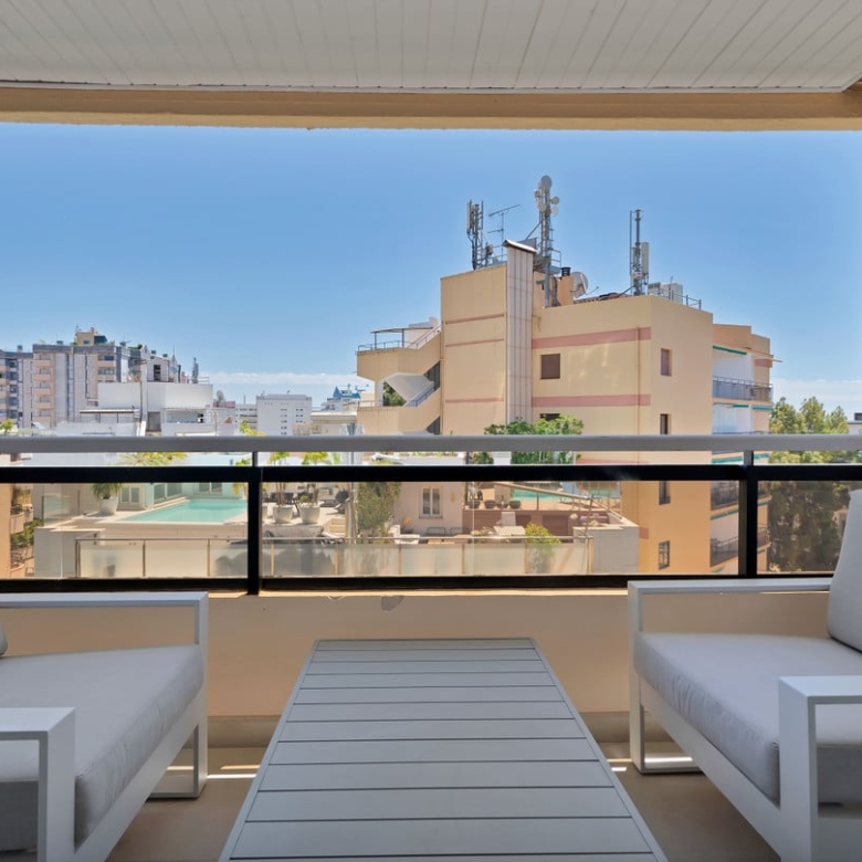 We present this spacious and elegant apartment, fully renovated with a contemporary style, offering a luxurious living experience in the heart of Marbella. With a built area of 192 m2, this property stands out for its open-plan design and stunning views of the Mediterranean Sea, the Alameda Park, and the city of Marbella.