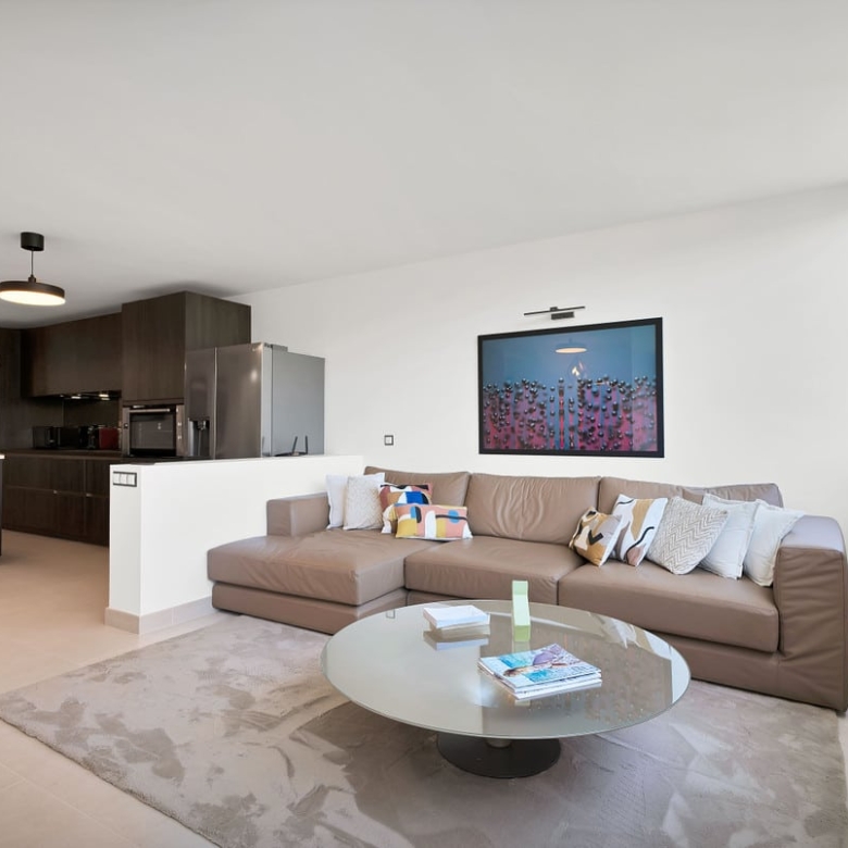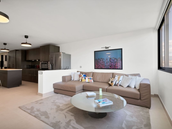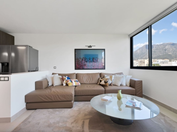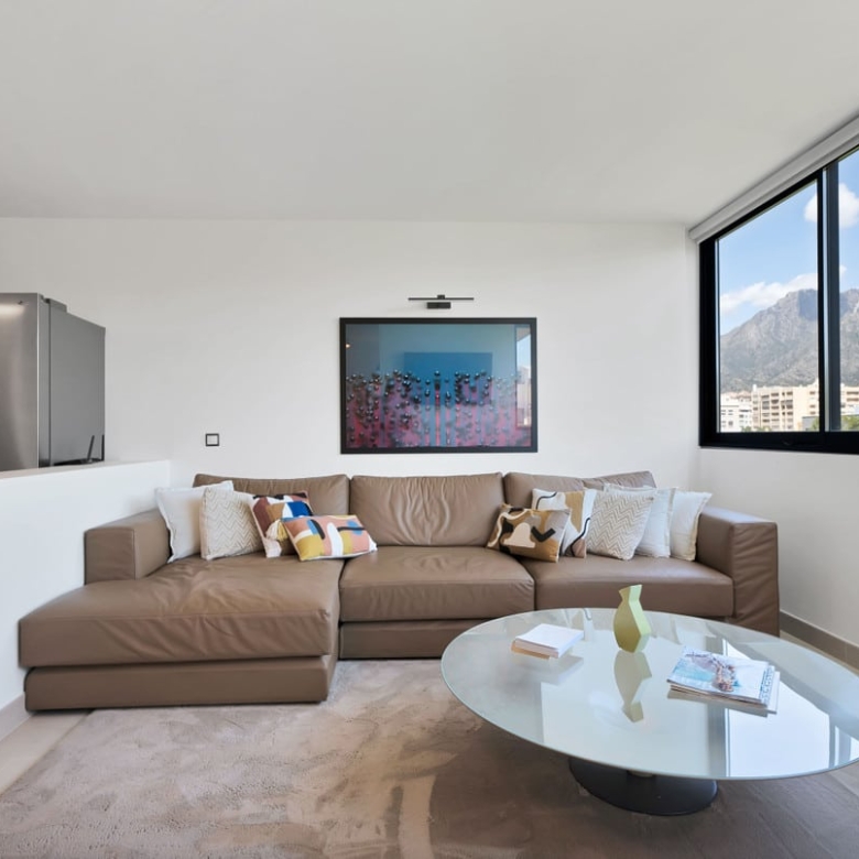 Living Room: From the living room, you can enjoy impressive views of the Mediterranean Sea, the Alameda Park, and the city of Marbella, providing a perfect setting for relaxation and appreciating the beauty of the surroundings.