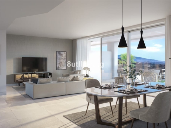 Spacious and modern newly built apartment in an urbanization surrounded by the golf fairways of Santa Clara golf, in the East of Marbella, just 5 minutes from the city center.