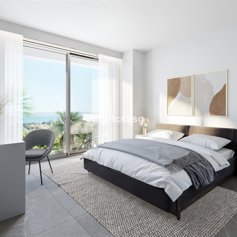 With 3 bedrooms and 2 bathrooms, 2. The large living room, with fully equipped integrated kitchen and separate laundry room, has access to the west facing porch – terrace, to enjoy the Marbella sunsets, with views of the sea and the golf course. The master bedroom suite has a large dressing room and designer bathroom.2