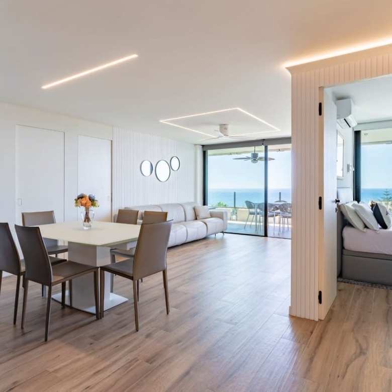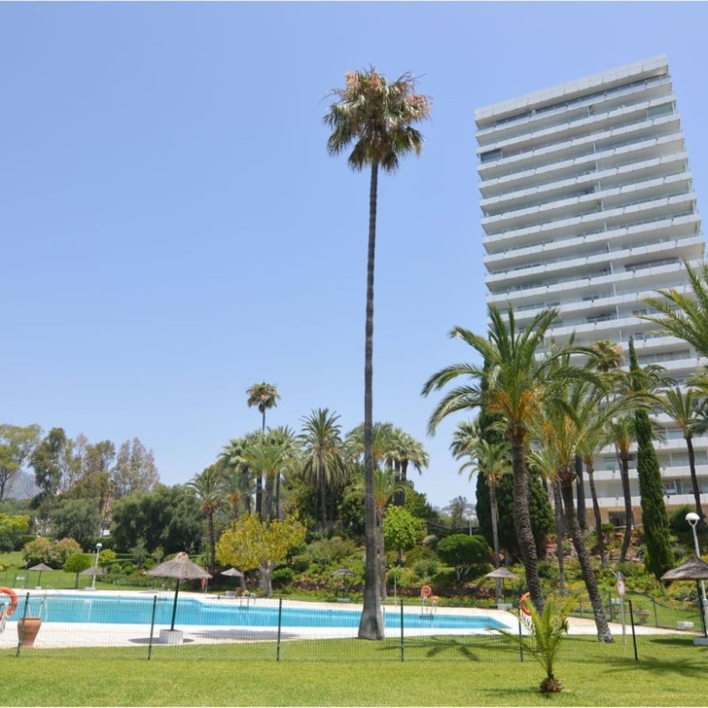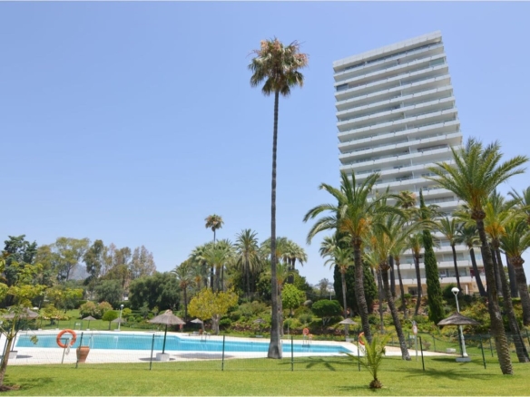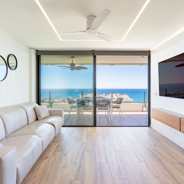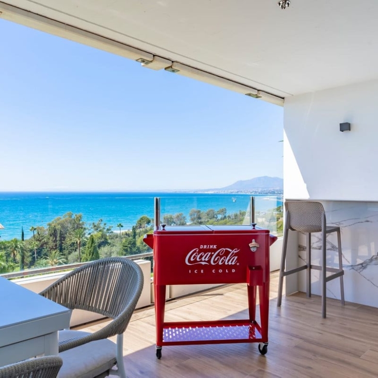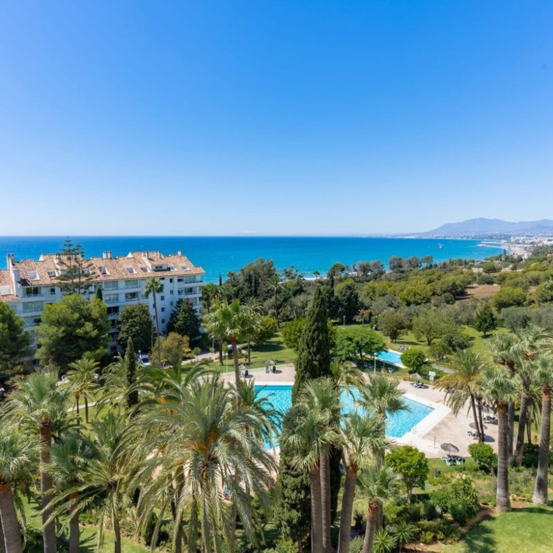 Stunningly refurbished 3-bedroom, 2-bathroom apartment offering breathtaking panoramic views of the Mediterranean Sea, the beautifully landscaped community grounds, and Marbella itself.