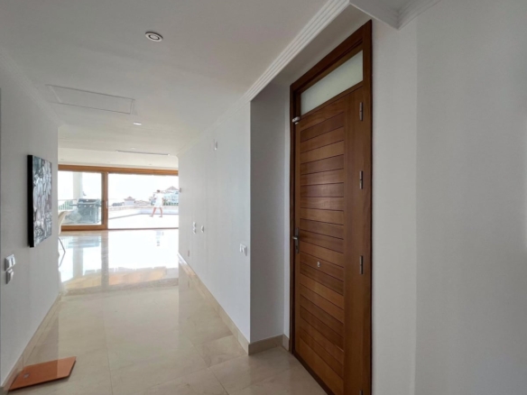 The living and dining areas are designed with an open floor plan and connect to a large terrace through sliding glass doors. The terrace offers breathtaking panoramic views of the sea and the Marbella coastline. The terrace is divided into several zones: an outdoor dining area, a lounge area for relaxing under the Mediterranean sun, and a barbecue area for family dinners and gatherings with friends.