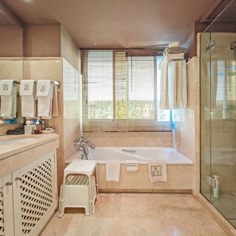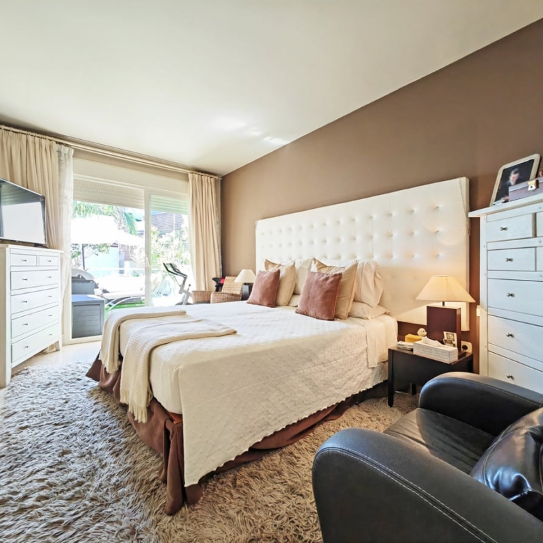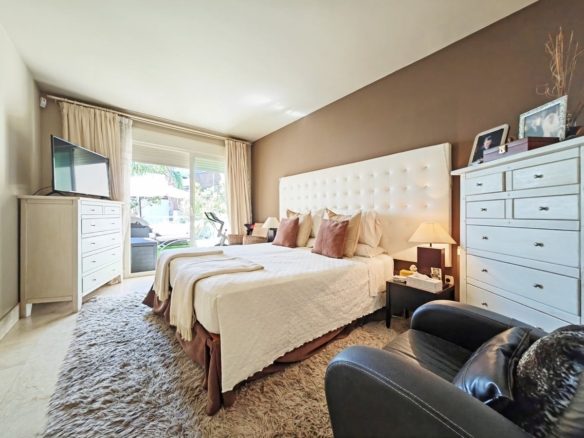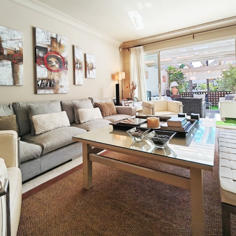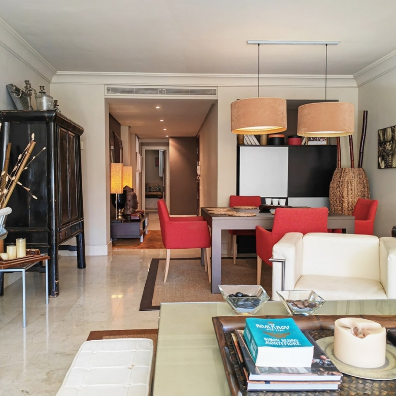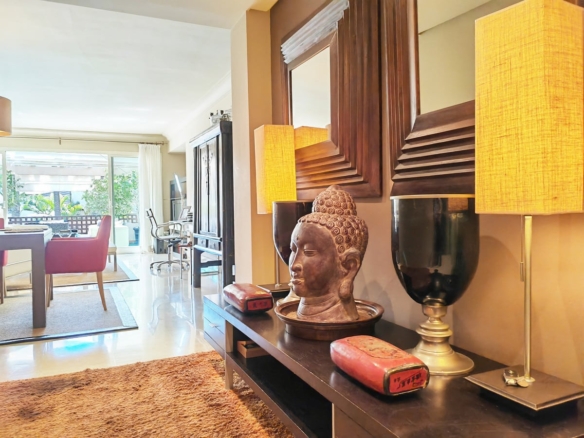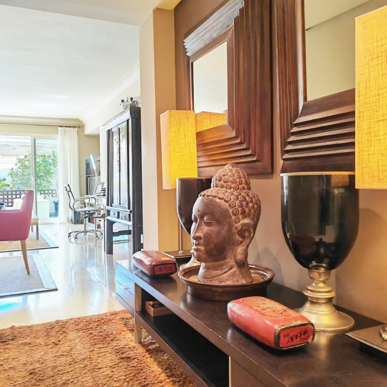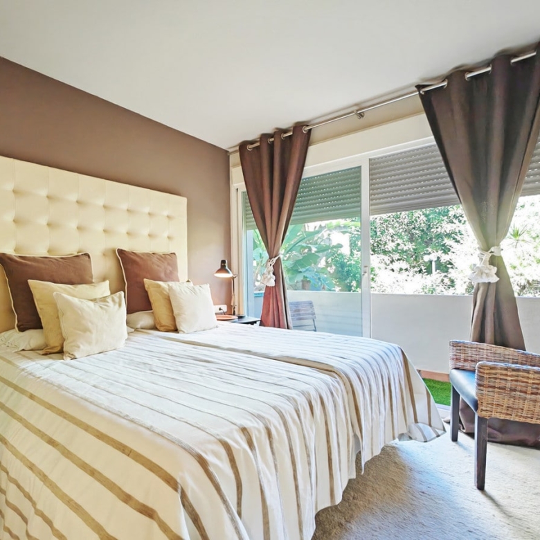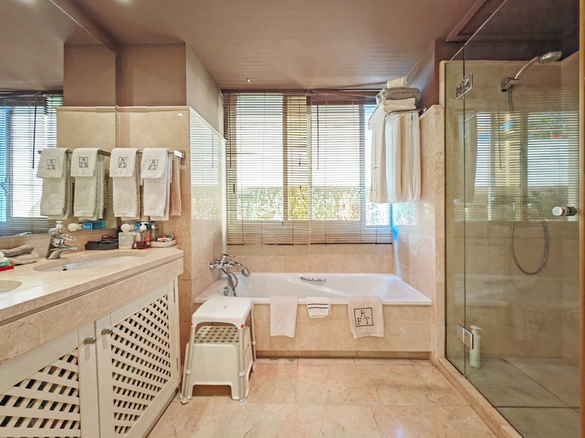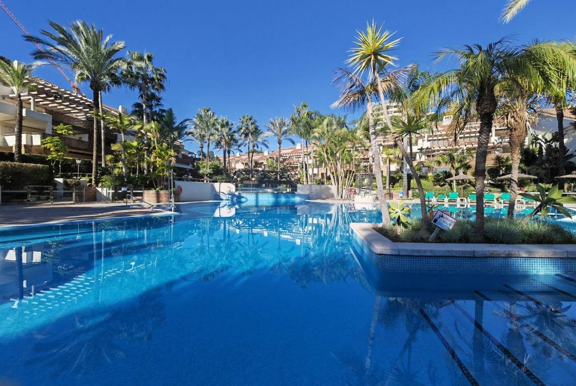 Apartment for sale in Golf Gardens, Marbella with 3 bedrooms, 2 en suite bathrooms, 1 toilet and with orientation south/east, with communal swimming pool, private garage (2 parking spaces) and communal garden. Regarding property dimensions, it has 161 m2 built and 51 m2 terrace. Has the following facilities amenities near, air conditioning, central heating, alarm, security service 24h, guest toilet, private terrace, kitchen equipped, living room, automatic irrigation system, laundry room, internet – wi-fi, covered terrace, 24h service, fitted wardrobes, gated community, lift, garden view, pool view, close to sea / beach, close to golf, optional furniture, excellent condition, saltwater swimming pool, close to town and surveillance cameras.
