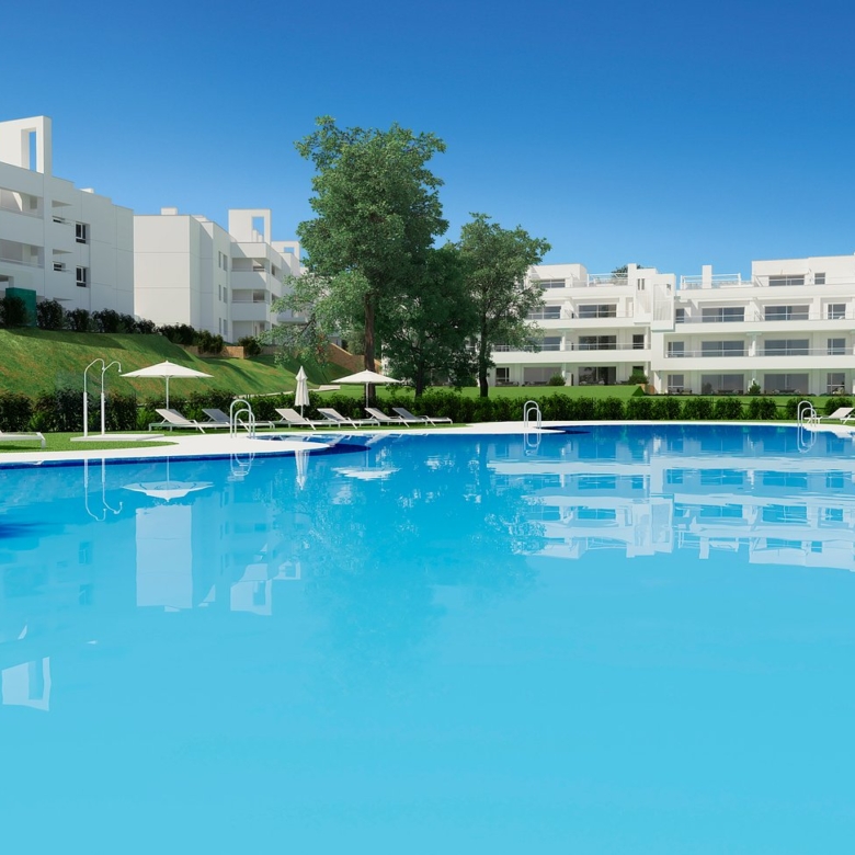 A new development consisting of apartments in Mediterranean style buildings arranged over a large tract of land. Owners will be able to enjoy a spectacular communal area of more than 3,000 m² which will boast the largest swimming pool in the entire resort – an expanse of no less than 600 m² of water – a children’s pool, a covered multi-purpose structure, children’s playgrounds and generous gardens where they can enjoy the sun all year round.