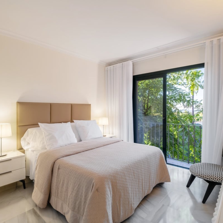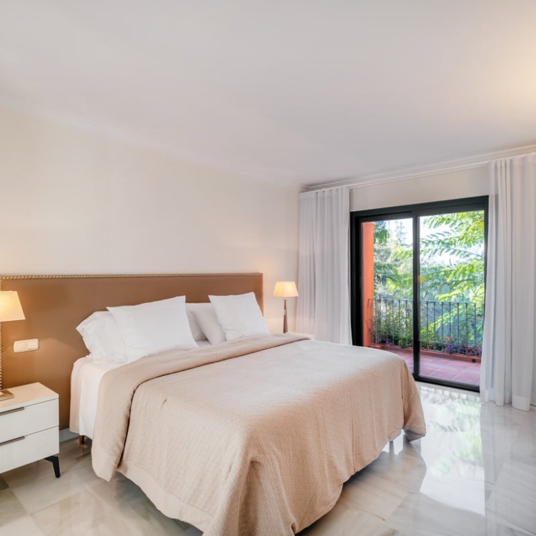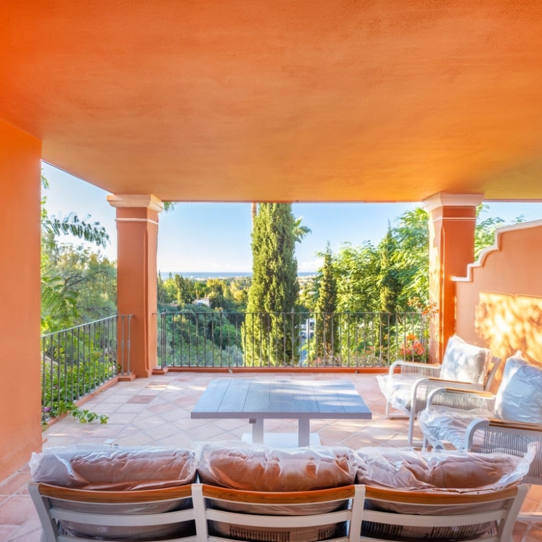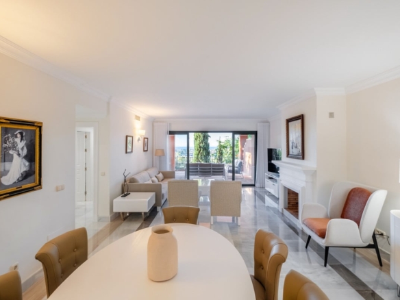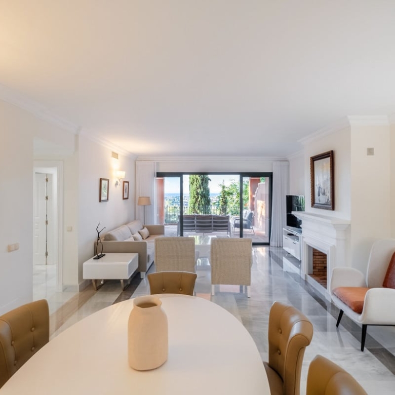 This luxury Benahavis apartment has been carefully updated and decorated to enhance its timeless appeal. The home is fully furnished and key-ready, featuring brand-new Egyptian cotton bed linens on all beds and soft, plush towels in the bathrooms. Located in the prestigious El Real de Monte Halcones complex, built on gently sloping hills, this exquisite home offers easy access to Marbella while ensuring a peaceful and serene environment.