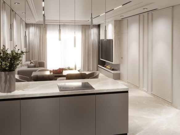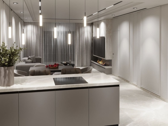 inside, the apartment showcases a newly designed open-plan kitchen and living area, meticulously crafted with meticulous attention to detail. Expansive windows afford uninterrupted vistas of the azure Mediterranean Sea. The interior is further enhanced by luxurious amenities, added conveniences include underground parking and a storage unit.