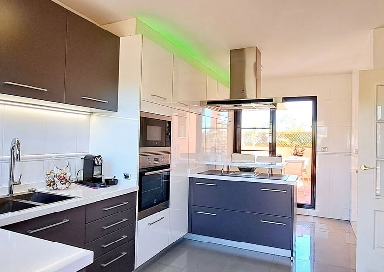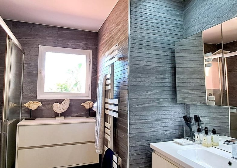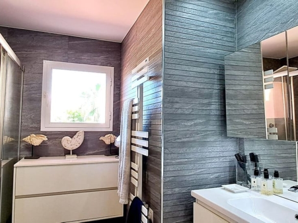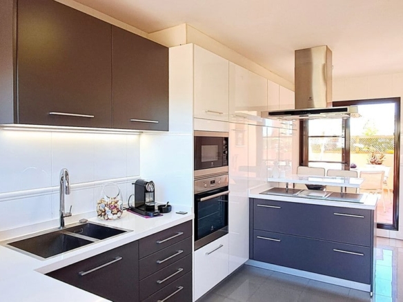 By entering the main level you find the south facing living/ dining area leading out to one of the four terraces, a modern & well equipped brand new kitchen, two bedrooms sharing the renovated modern shower room and as well a guest toilet.
