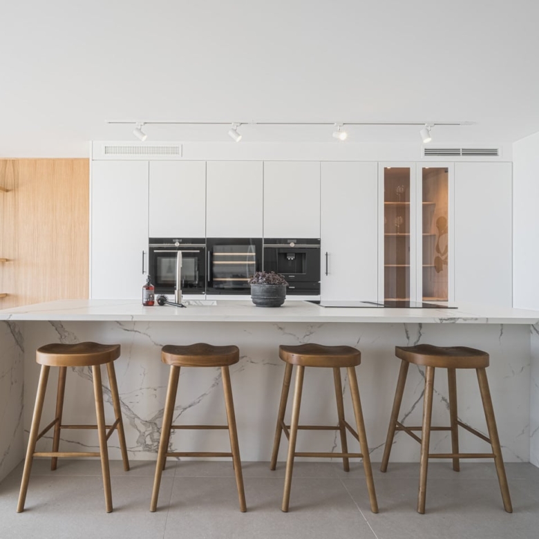 You will find an open plan modern living room – kitchen and dining room leading onto the