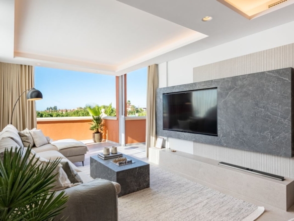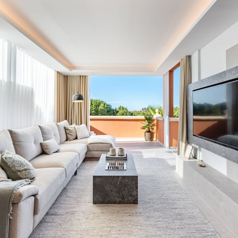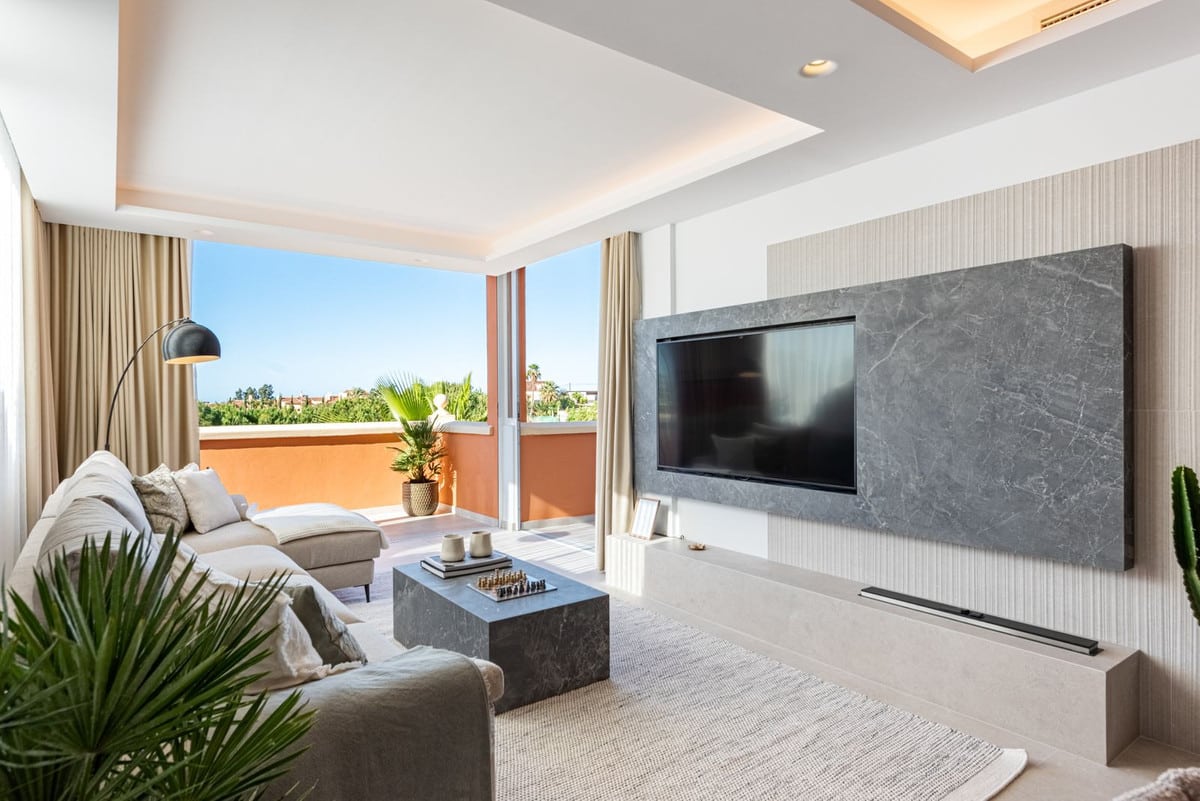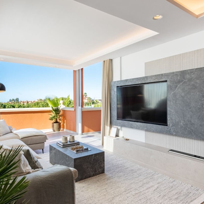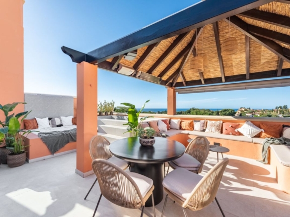 Discover the epitome of luxury living in this fully renovated penthouse located in Nueva Andalucia. This stunning residence features three bedrooms, three modern bathrooms, along with a dedicated office space.