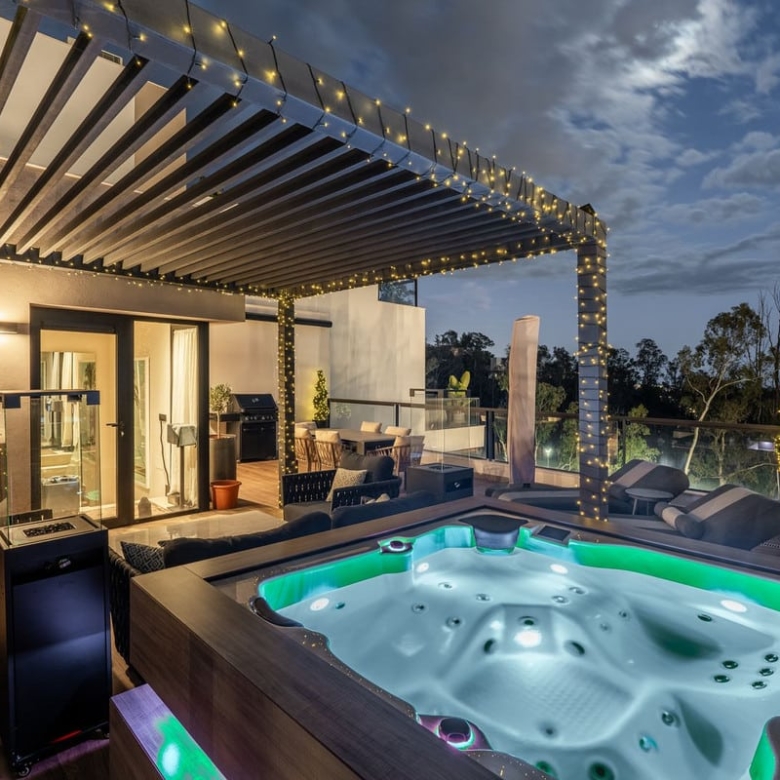 The crown jewel of this property is the expansive roof terrace, a perfect retreat for both relaxation and entertainment. it is fully equipped with a BBQ area, a luxurious jacuzzi, ample seating for dining or lounging, and even a ping pong table for added fun. This outdoor space offers the ultimate combination of leisure and breathtaking views, making it a standout feature of the home.