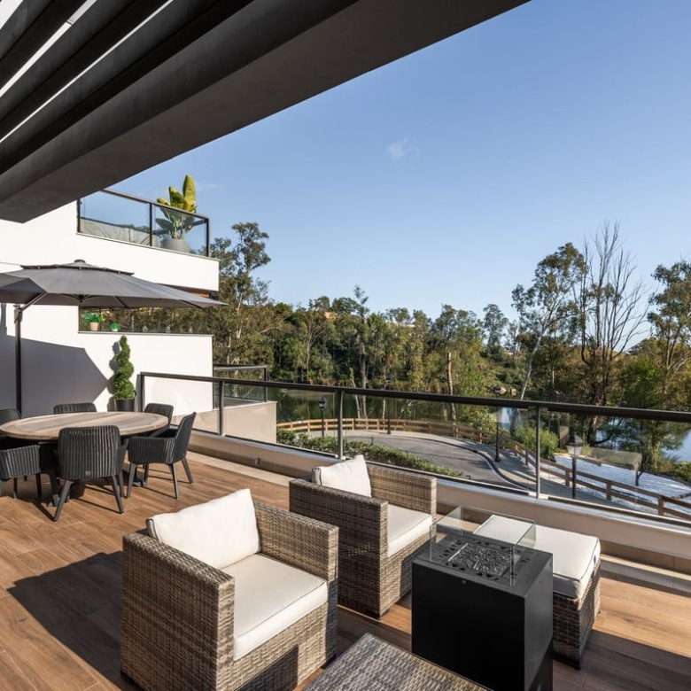 Welcome to this exceptional 3-bedroom, 2-bathroom apartment located in the heart of Nueva Andalucia. Perfectly positioned to capture breathtaking vistas, this property offers an unparalleled living experience with its expansive rooftop terrace, featuring panoramic lake, mountain, and a partial glimpse of the sparkling Mediterranean Sea.