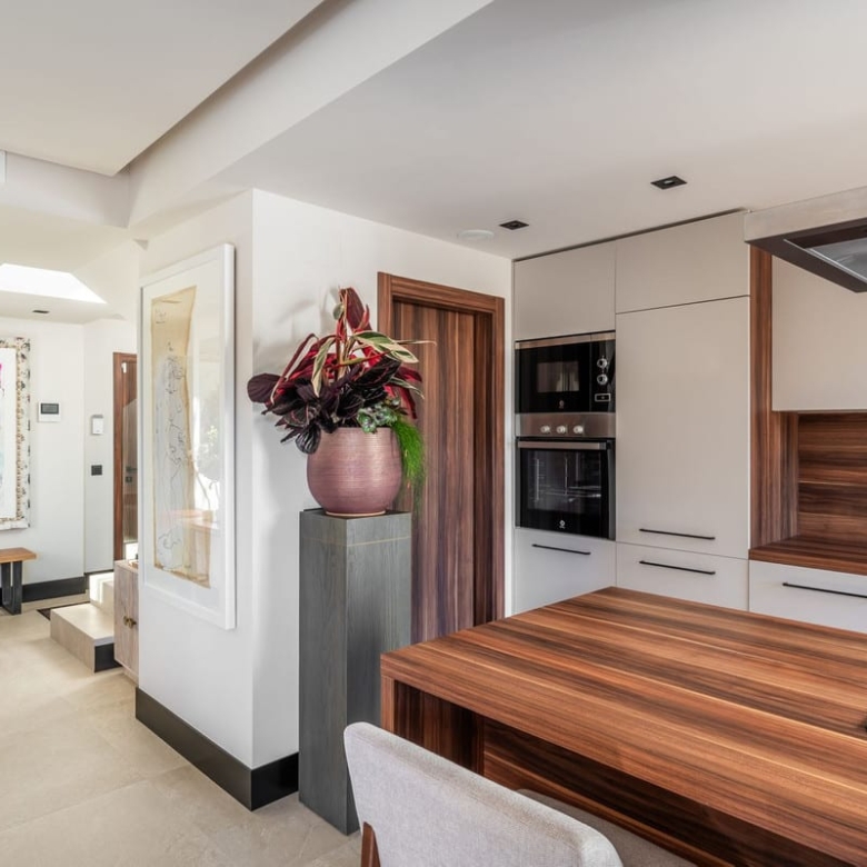 Step inside and discover a thoughtfully designed interior featuring a bright and airy open-plan living and dining area. The modern kitchen, equipped with high-end appliances, flows seamlessly into the living space, making it ideal for both relaxed evenings and entertaining guests.