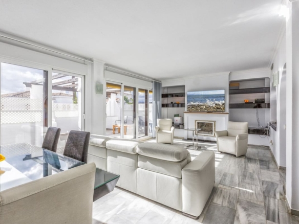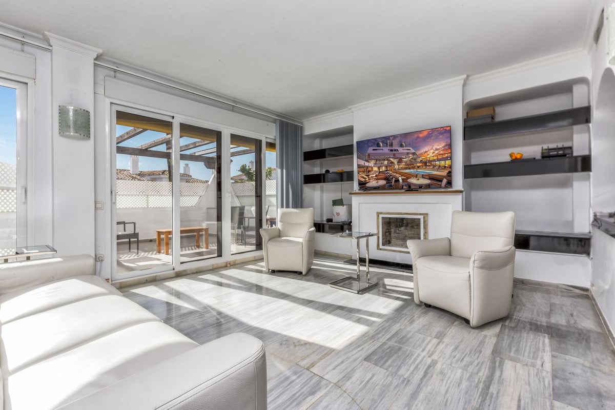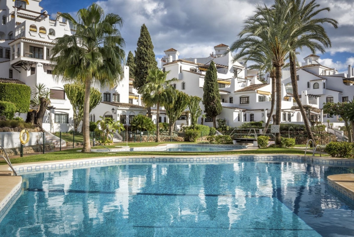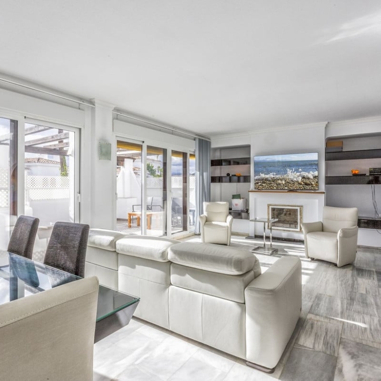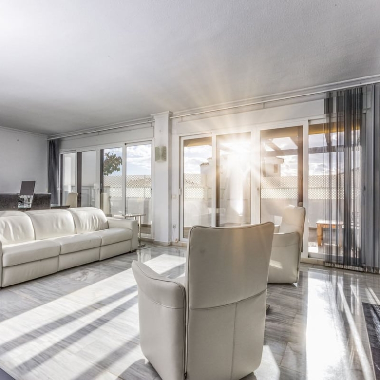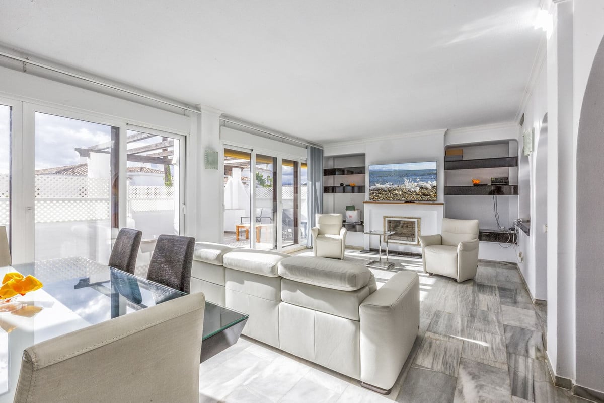 Flat for sale in the most beautiful complex in Nueva Andalucia. This spacious and bright property has 3 bedrooms and a southwest orientation, which guarantees excellent natural light all day long. Being a corner unit, it offers more privacy and tranquillity.