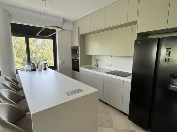 Upon entering, you’ll be greeted by a spacious and bright living-dining area, designed for both entertainment and relaxation. The modern, fully equipped kitchen with high-end appliances, and the convenient laundry room, add functionality and elegance to the property. Luxury finishes and designer furniture create an atmosphere of refinement in every corner.
