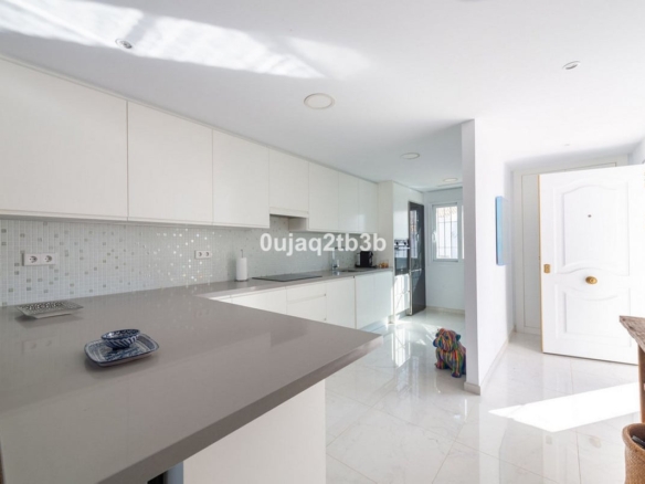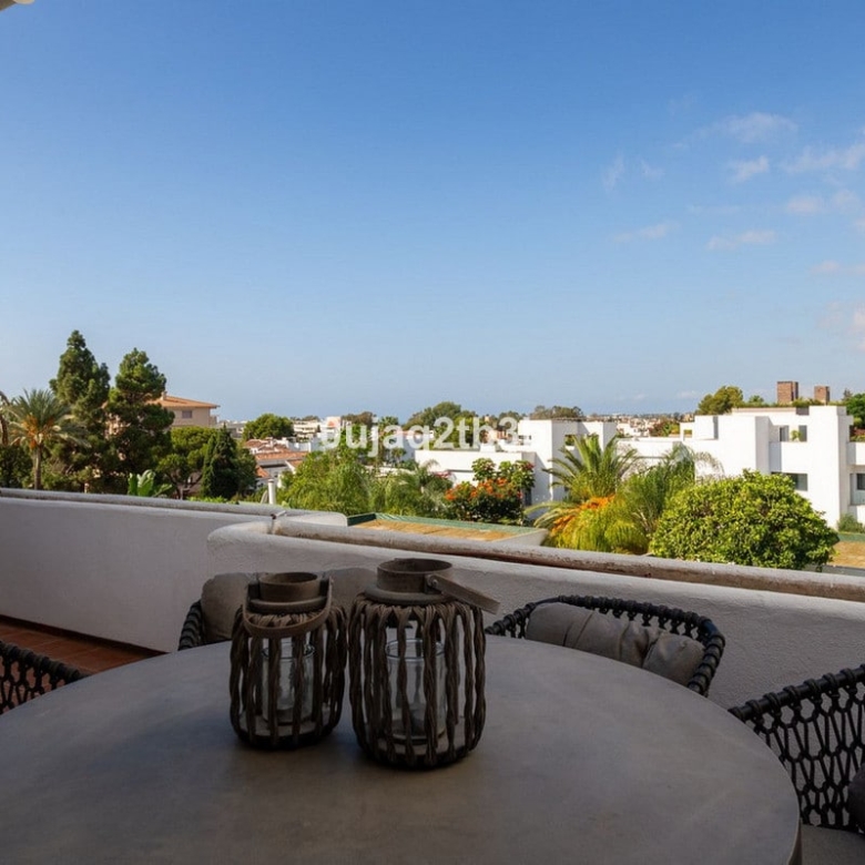 Sought after apartment in a closed gated complex with high security standards. This gated complex offers large open areas, matured gardens, large communal pool for adults and for children and tennis court. Walking distance to Centro Plaza and Puerto Banus. This ample three-bedroom, two-baths first floor apartment offers garden views and some distance sea views. The property has been recently fully refurbished to the minimum detail. West oriented with uninterrupted open garden views and Gibraltar in the distance.