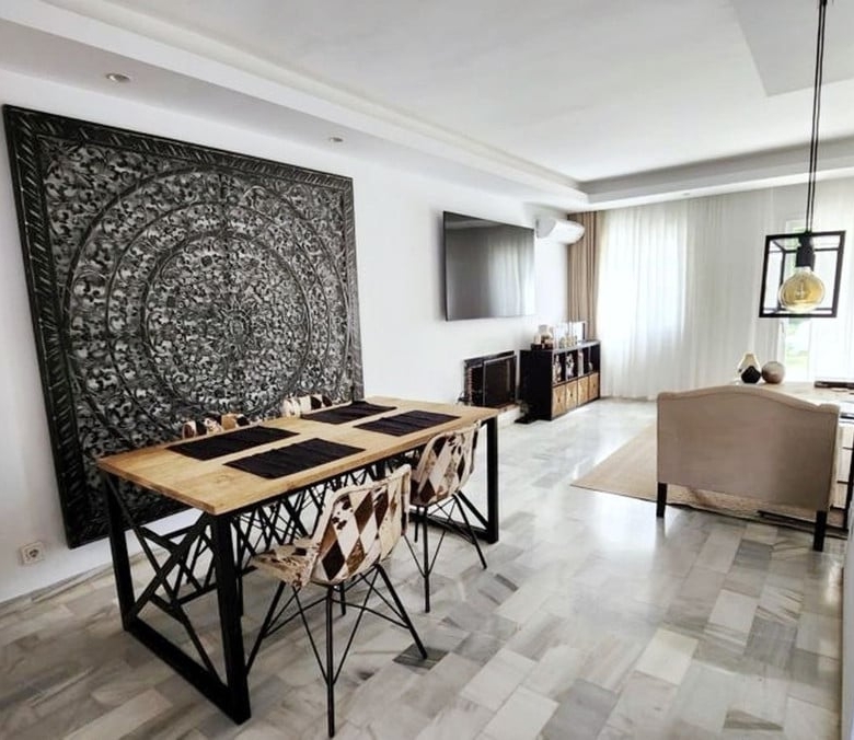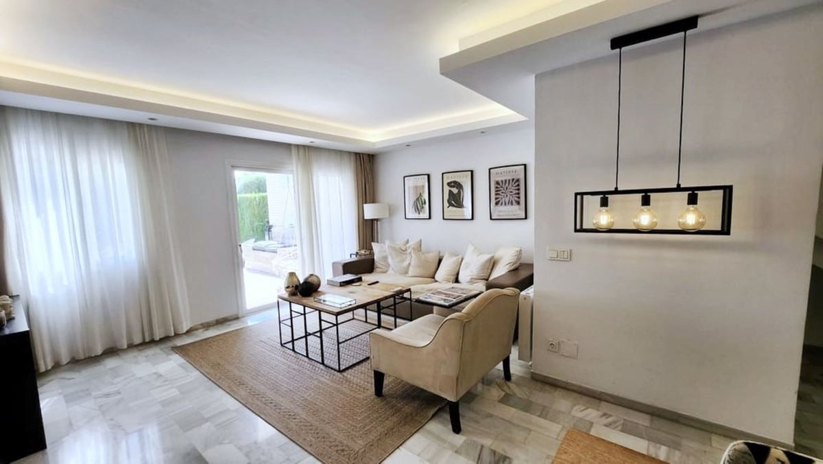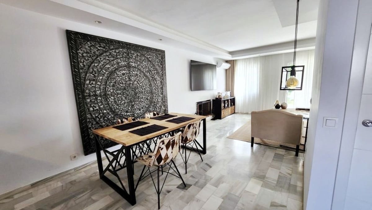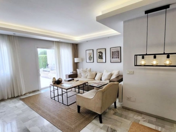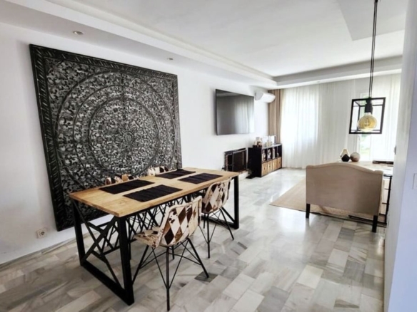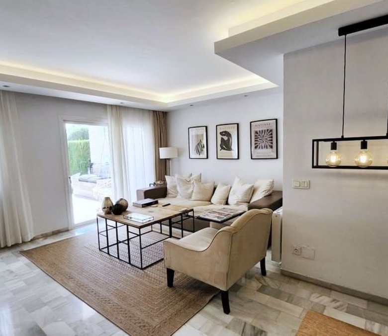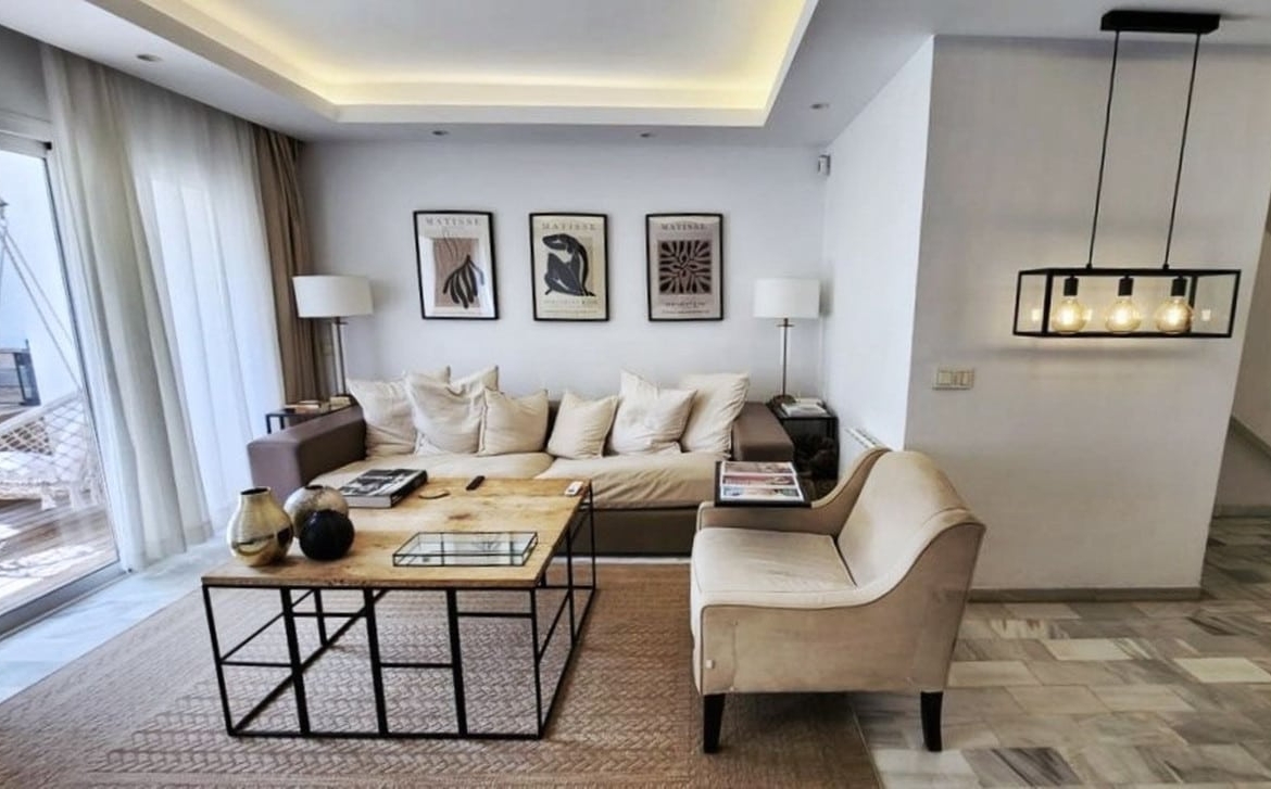 imagine yourself entering a spectacular duplex apartment in the heart of Nueva Andalucia, Marbella. This elegant home features a unique layout that offers comfort and privacy, feeling more like a townhouse than an apartment.