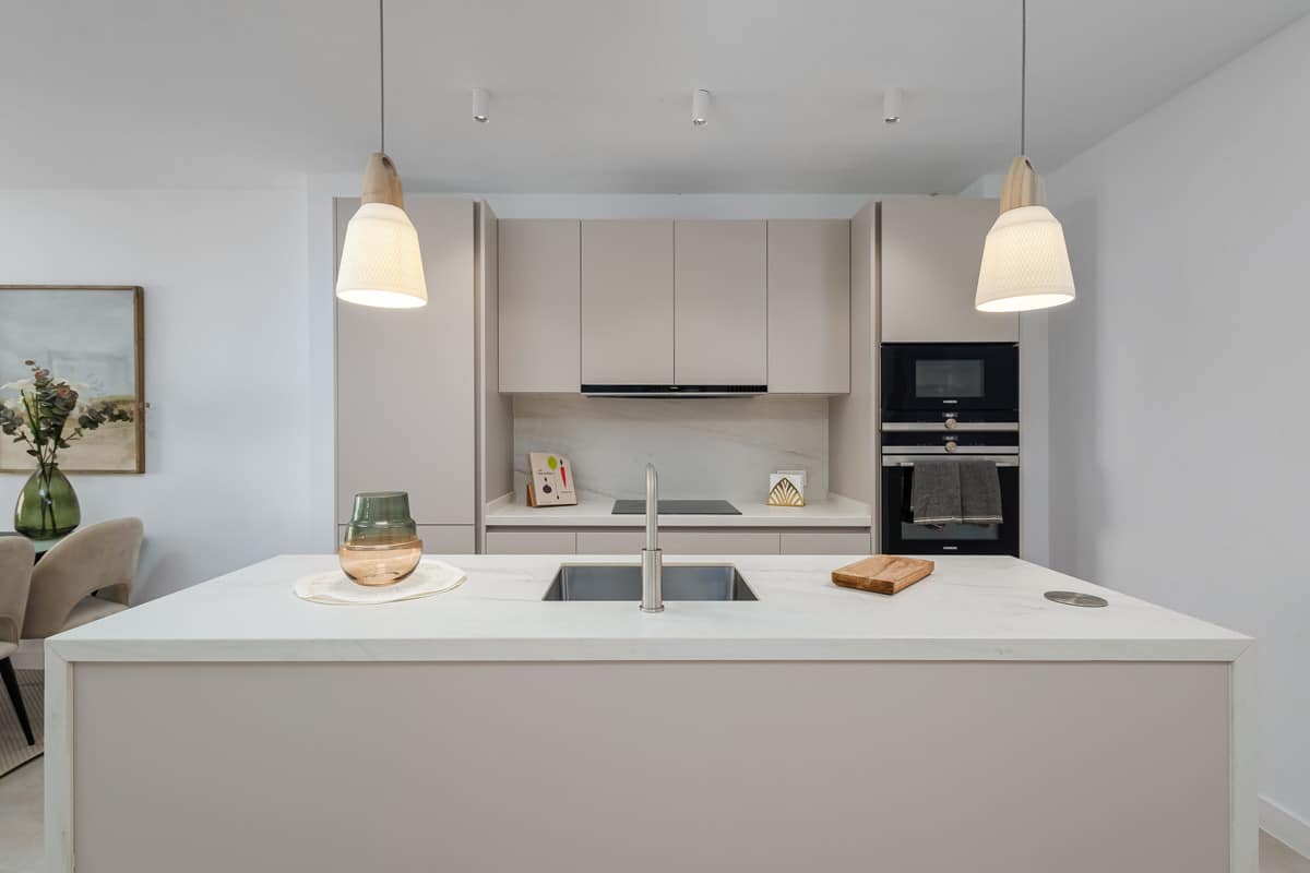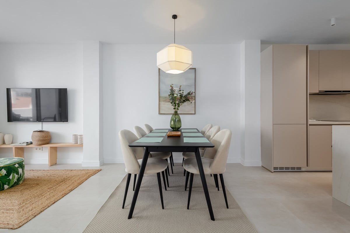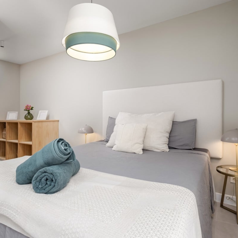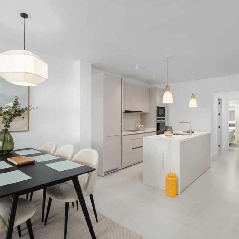 The apartment enjoys wonderful views of La Concha mountain, visible from a private terrace with a BBQ area. The master bedroom includes an en-suite bathroom, while the two additional bedrooms are perfect for family or guests. The community features two big pools, one of them heated and a smaller pool for children. With its fresh design and prime location, this apartment is perfect for comfortable, modern living.