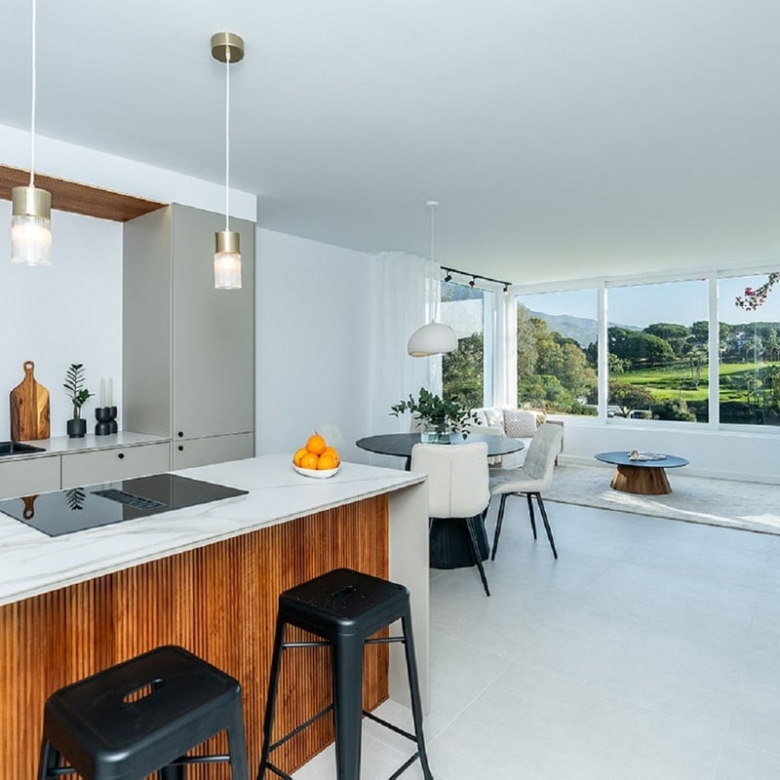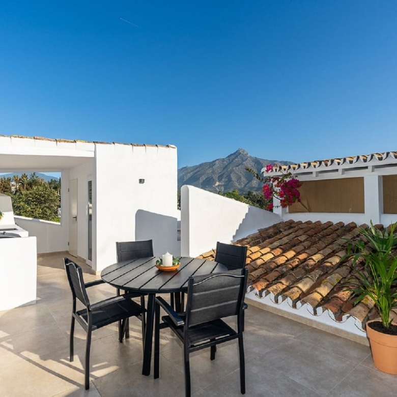 Welcome to this stunningly refurbished 3-bedroom, 2-bathroom top-floor apartment, located in a prestigious gated community in Nueva Andalucia. Meticulously redesigned to the highest standards, this home exudes modern elegance and exceptional attention to detail.
