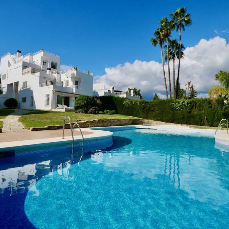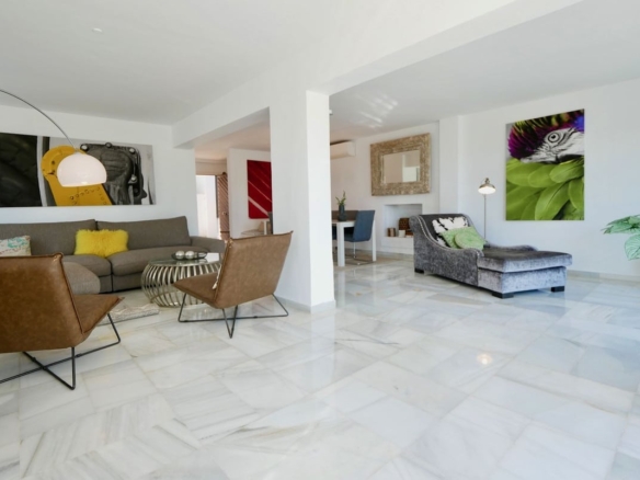 Location location location! Unique offer on the market, semi-detached property with villa feeling and beautiful views over the golf valley in heart of Nueva Andalucia.