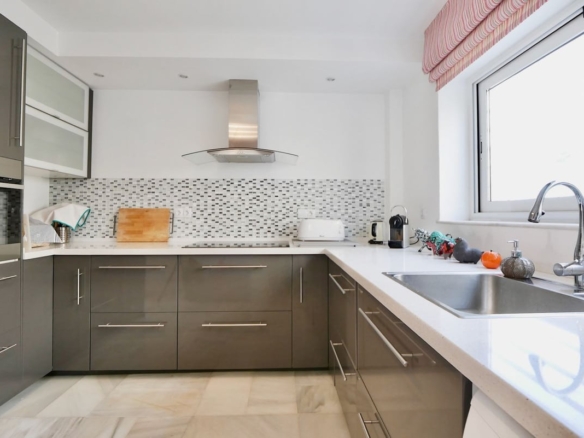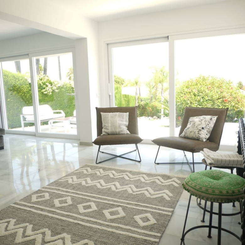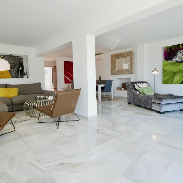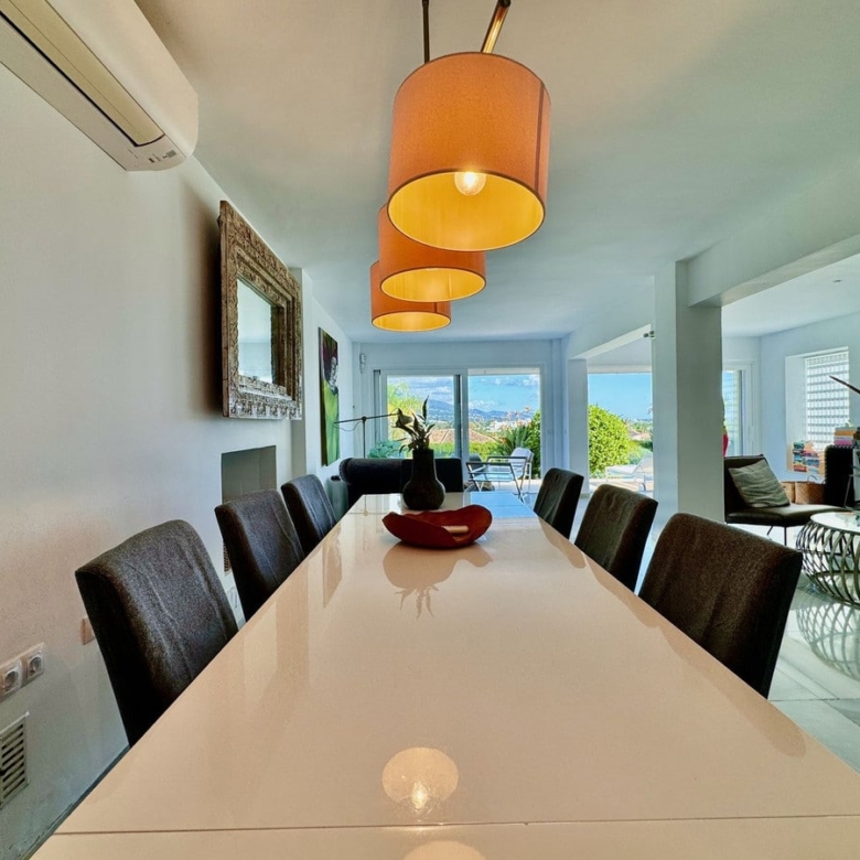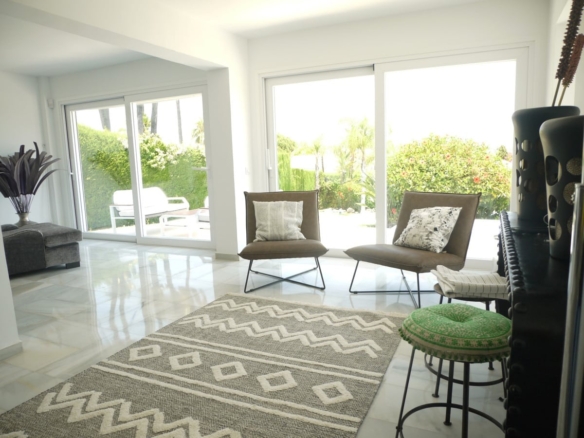 This is a stunning semi detached property with 3 bedroom and 2 bathrooms, with spacious villa feeling, in one of the best locations in the beautiful golf valley of Nueva Andalucia. There are only 6 properties in this urbanisation and well maintained urbanisation, garden and pool area. This property is completely refurbished with new windows all around plus new terrace doors, refurbished terrace with beautiful tiles. Plus, two refurbished modern bathrooms and new AC in each room on both floors.
