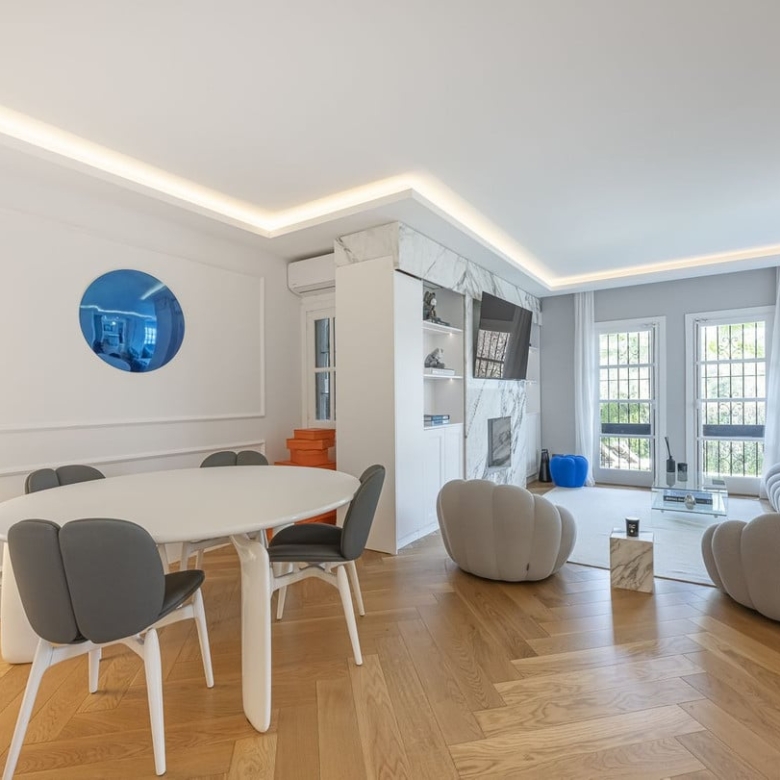 This charming ground floor apartment in Nueva Andalucia offers you the highest comfort in one of the most sought after locations in Marbella. With 3 bedrooms and 2 bathrooms and a living area of 100 m2, this property is an ideal combination of elegance and functionality.