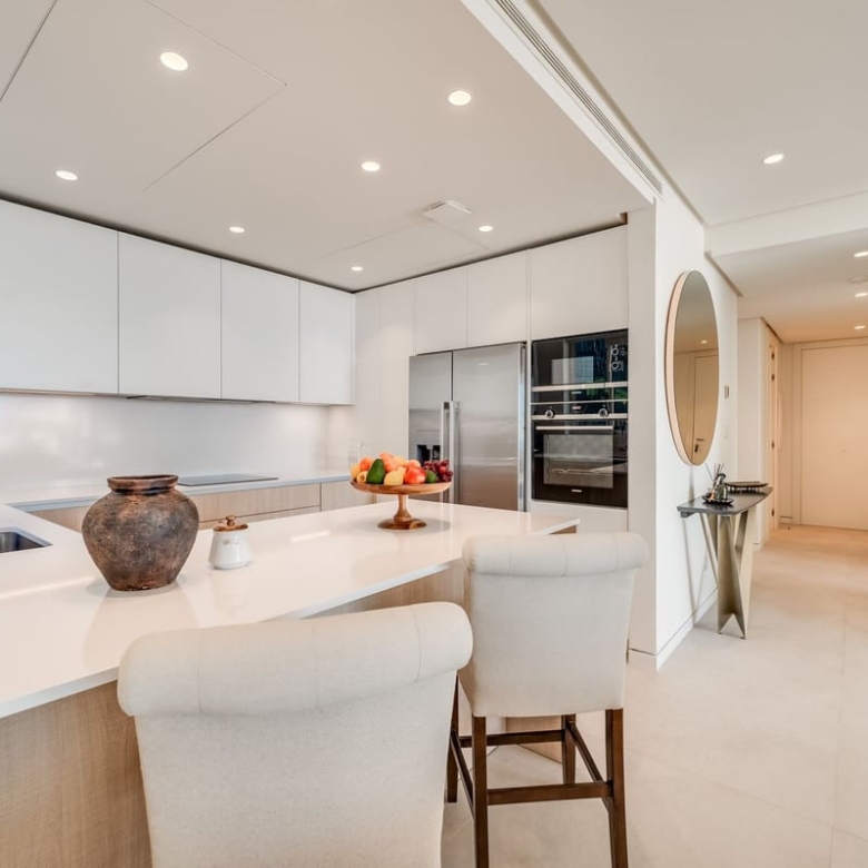 High-End Kitchen: The open-plan kitchen is equipped with premium appliances, ideal for culinary enthusiasts.
