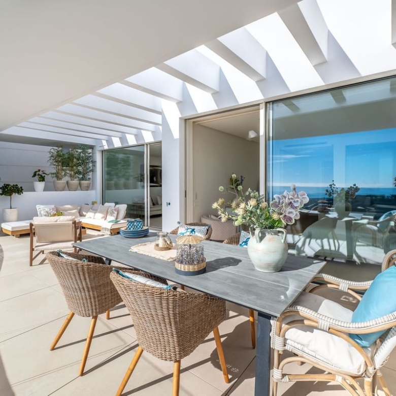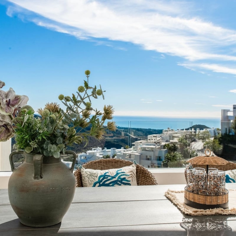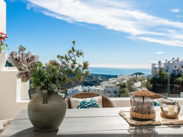 This spacious and sophisticated 3-bedroom apartment combines modern luxury with breathtaking south-east facing views of the Mediterranean Sea and the surrounding Sierra de las Nieves Natural Park.