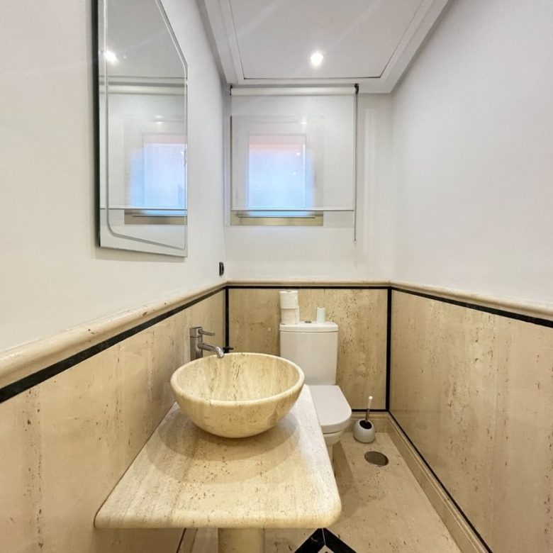 With more than 250 square meters built, this impressive beachfront property belongs to one of the most exclusive and elegant gated complexes in Marbella. With direct access to the beach, Casa Nova is located a few steps from the famous Puerto Banus marina.