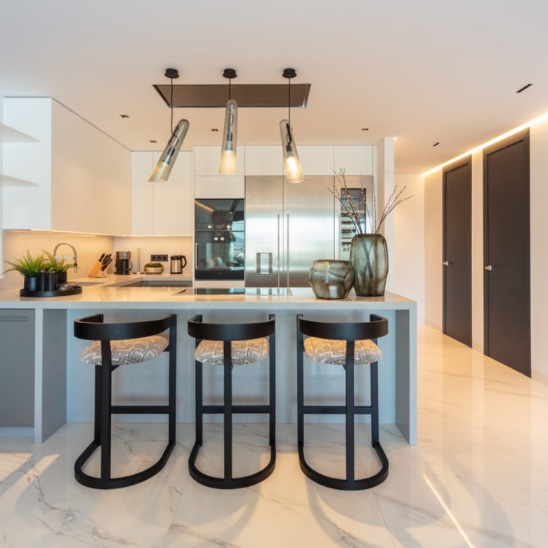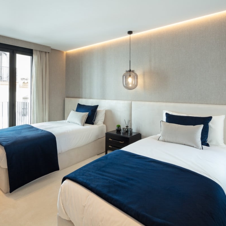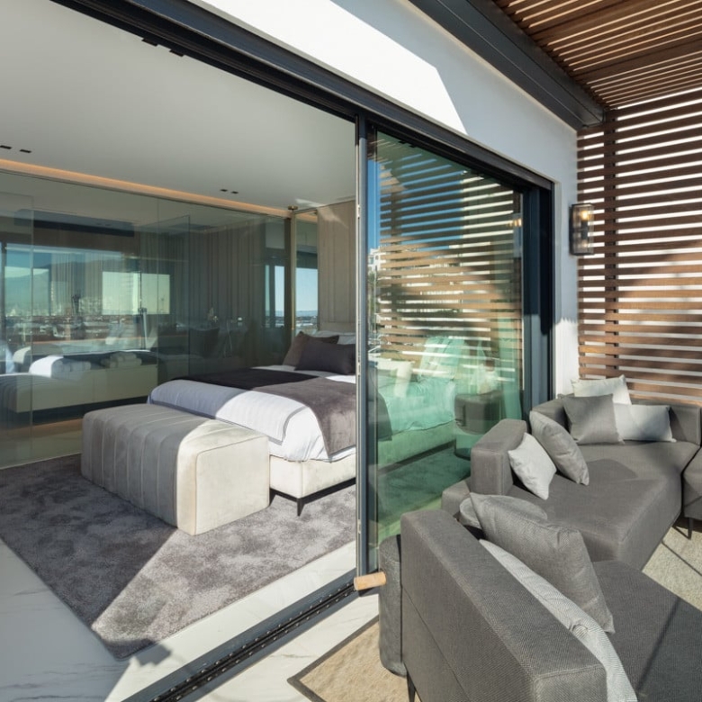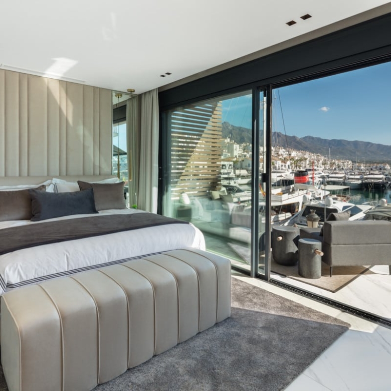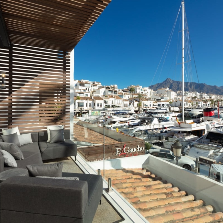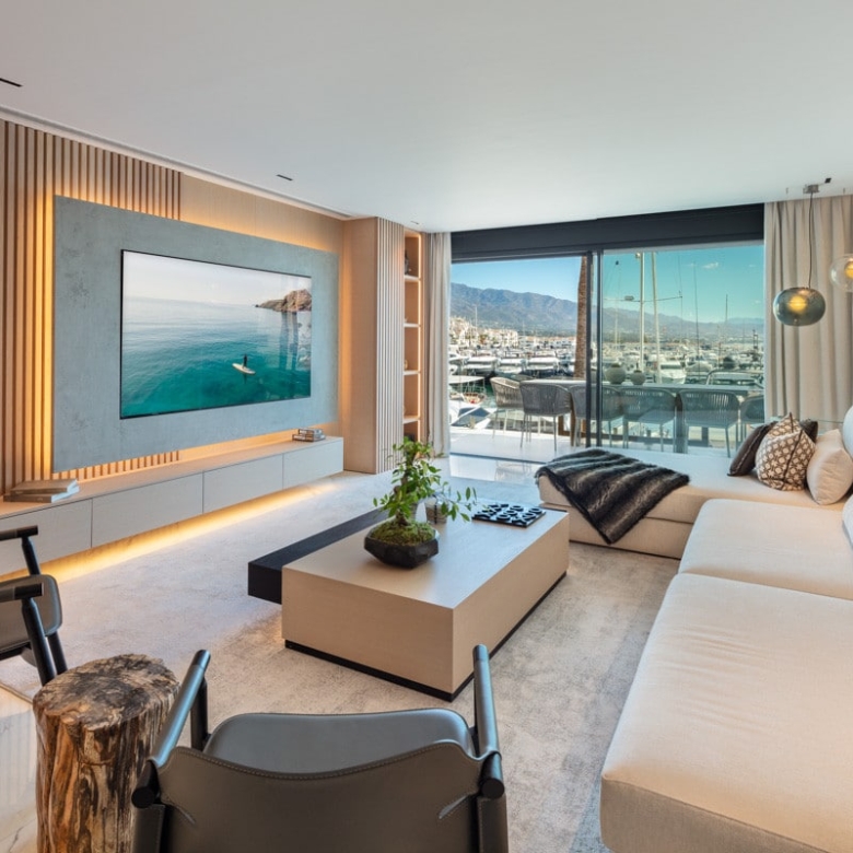 Contemporary three bedroom apartment located in the famous Puerto Banus Marina, with panoramic views to the Mediterranean Sea and harbour. Experience luxurious coastal living in Puerto Banus, with endless designer stores, avant-garde restaurants and luxury leisure activities to enjoy under the spectacular Marbella climate. This property was recently renovated with the highest qualities and complemented with refined contemporary design. Throughout the property discover top-of-the-line features such as an open plan living with almond wood paneling incorporated LED lighting, leading directly to the exterior terrace with frontline views towards the port, a sleek fitted kitchen complete with top-level Gaggenau appliances and three ensuite opulent bedrooms. Discover a lavish apartment with all the best Marbella has to offer at your fingertips.