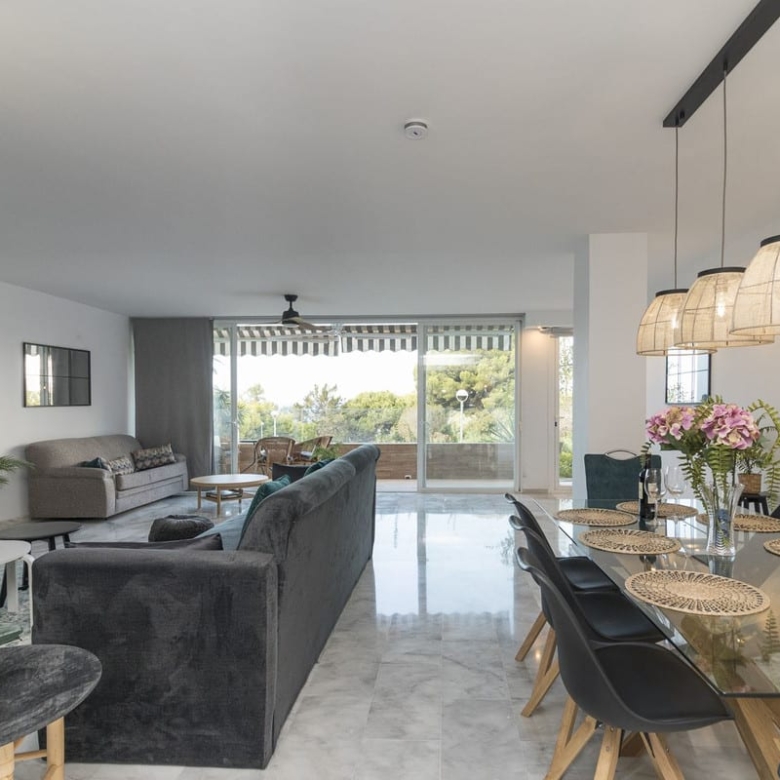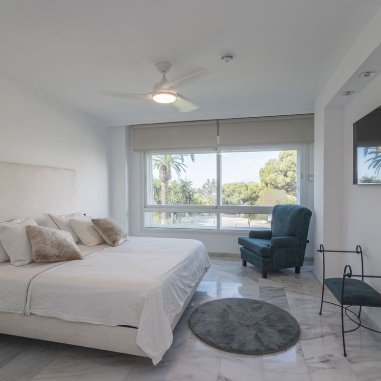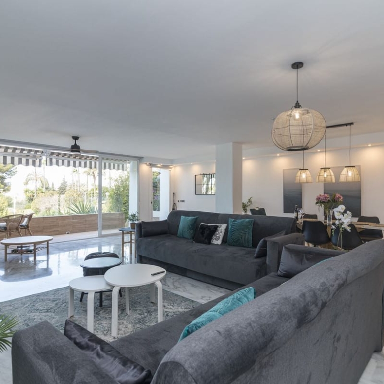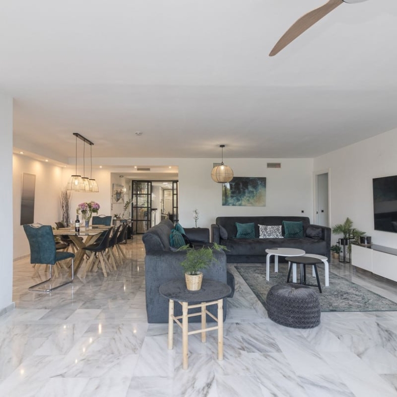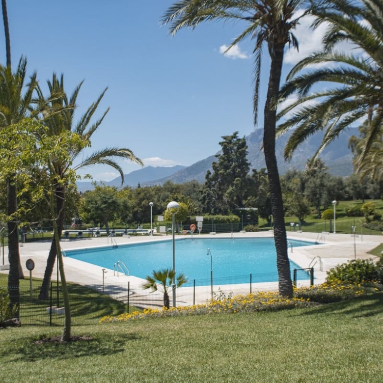 Located next to the Rio Real golf course, a few minutes walk from the beach and 5 minutes by car from the center of Marbella. Torre Real, located in Marbella in the Rio Real – Los Monteros golf area, is a gated community with security and surveillance cameras. it offers a large garden of more than 40,000m2, two swimming pools, the largest being salt chlorinated, tennis and paddle tennis, as well as a barbecue area. Trocadero Arena is the closest beach bar open all year round. There is a restaurant and cafeteria at the Rio Real golf club.