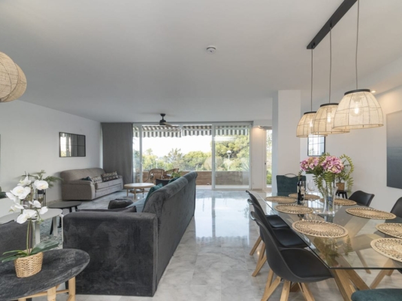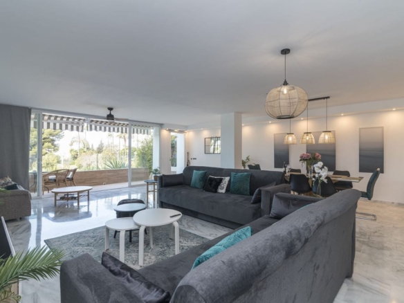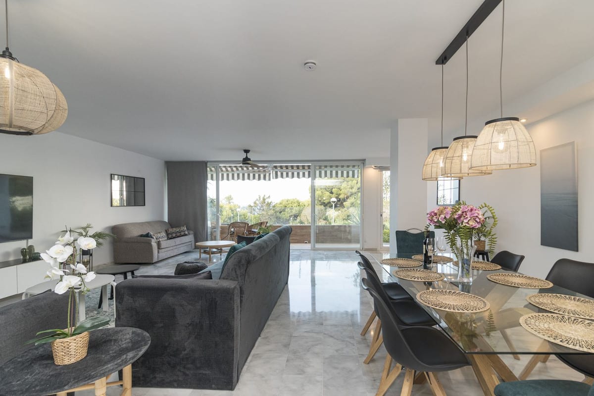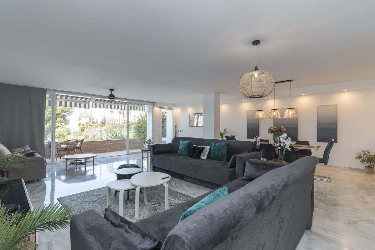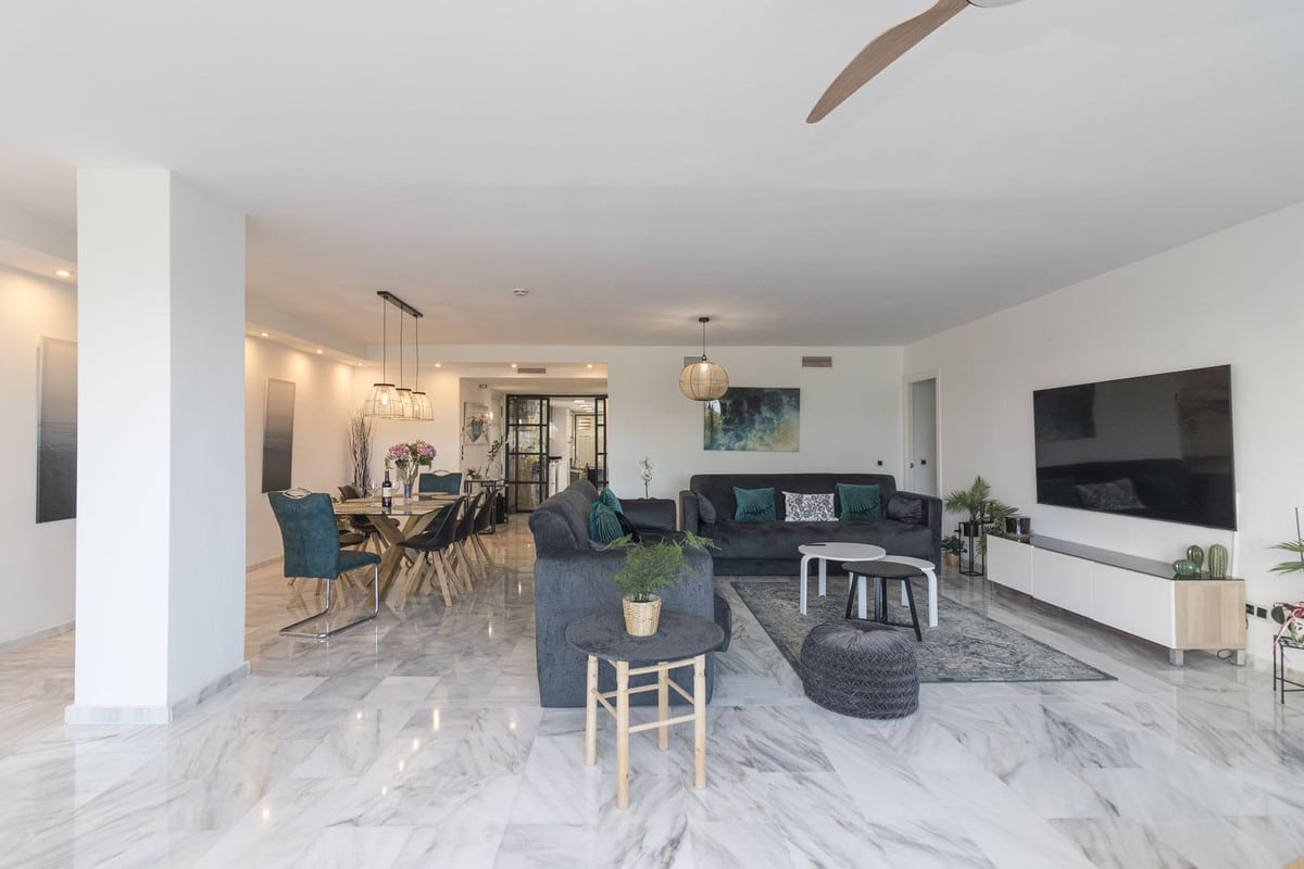 Located next to the Rio Real golf course, a few minutes walk from the beach and 5 minutes by car from the center of Marbella. Torre Real, located in Marbella in the Rio Real – Los Monteros golf area, is a gated community with security and surveillance cameras. it offers a large garden of more than 40,000m2, two swimming pools, the largest being salt chlorinated, tennis and paddle tennis, as well as a barbecue area. Trocadero Arena is the closest beach bar open all year round. There is a restaurant and cafeteria at the Rio Real golf club.