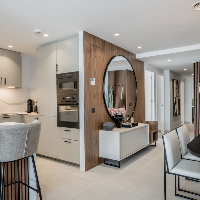 When you step into the home, you are greeted by a well-planned floor plan. One part of the penthouse consists of three spacious bedrooms with built-in wardrobes, one of which has its own en-suite bathroom. The social areas include an open, modern kitchen that provides a seamless connection with both the dining area and the living room.