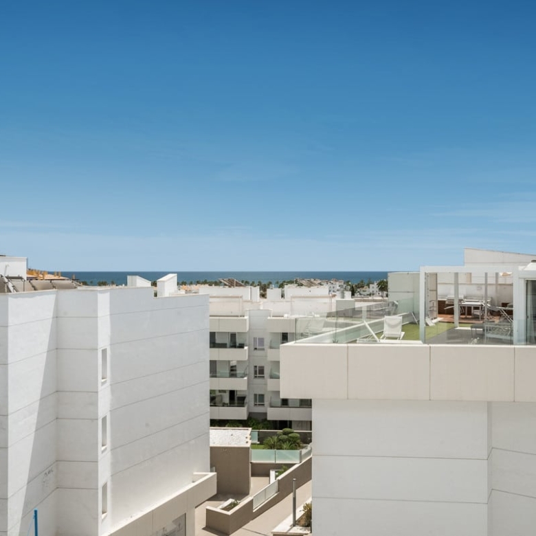 Welcome to Los Arqueros Beach, a modern urbanization located on the beachfront of San Pedro de Alcantara. Built in 2013, this elegant complex offers all the comforts of a luxurious stay. There is a large communal pool, private garage parking and a lift for easy access.