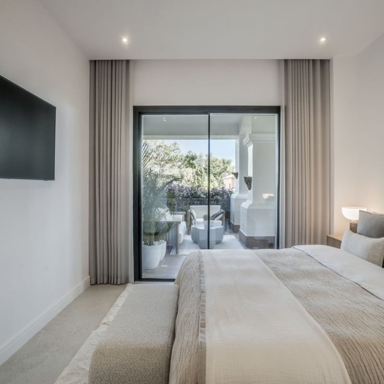 introducing, Altos Reales 1 a newly renovated 3 bedroom and 3 bathroom ground floor apartment in the exclusive community of Altos Reales in Sierra Blanca. Where every aspect of this apartment has been carefully designed to create a unique living experience: elegant floors, high-ceiling, contemporary custom wood carpentry and wardrobes, natural fabrics and textures, an open designer kitchen with Miele appliances.