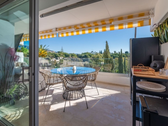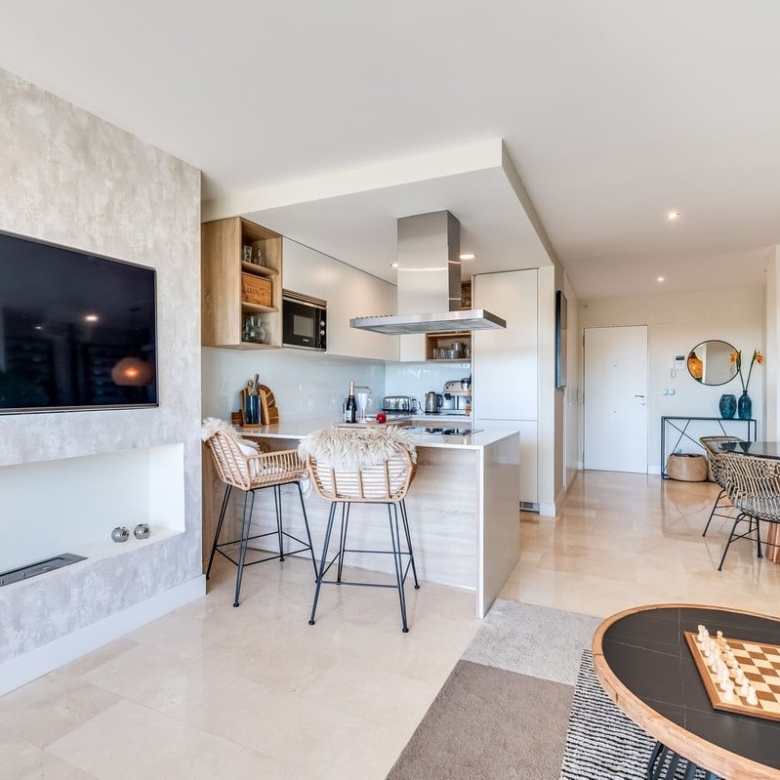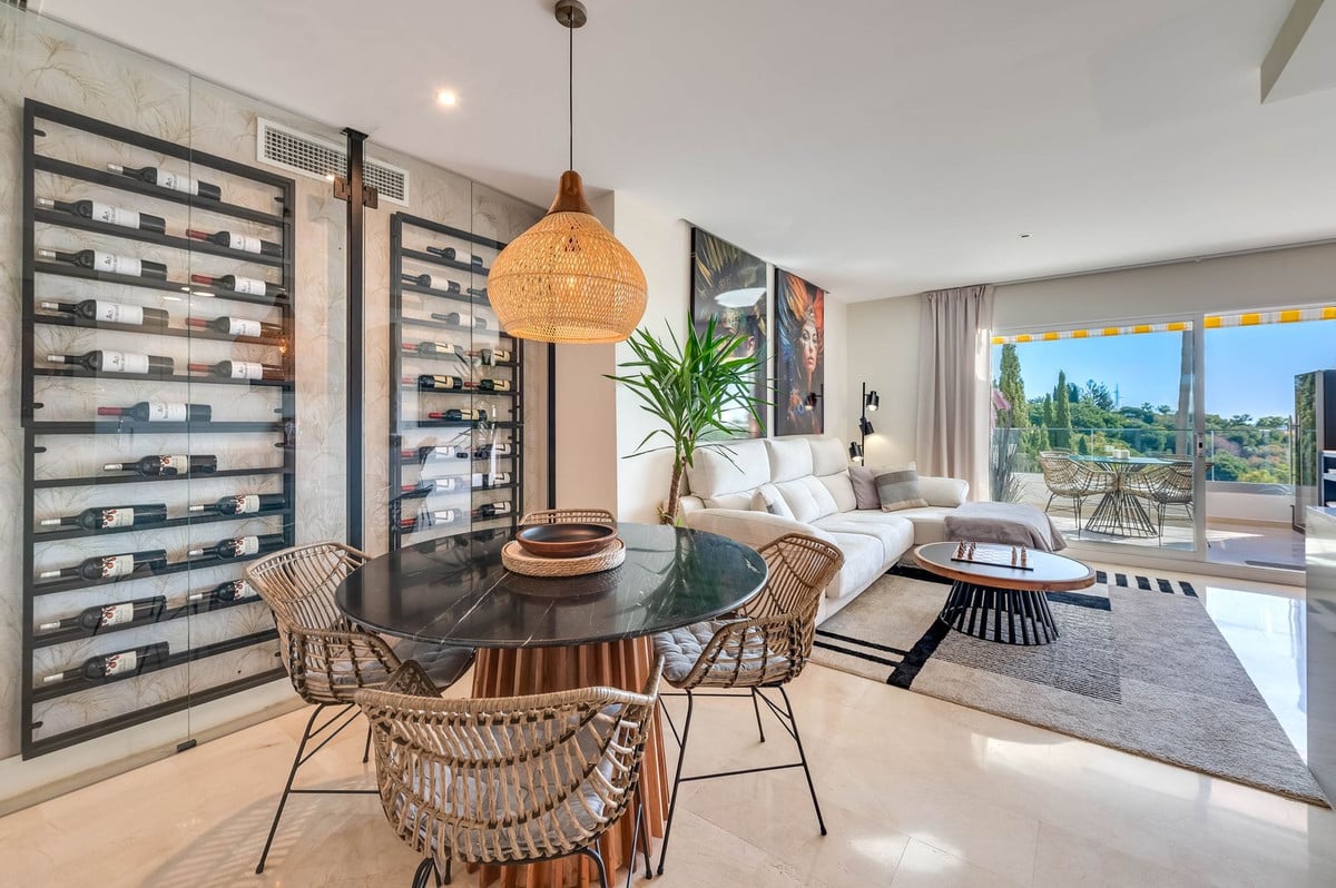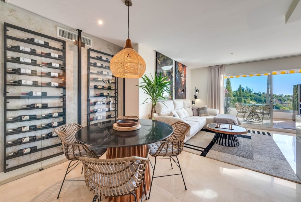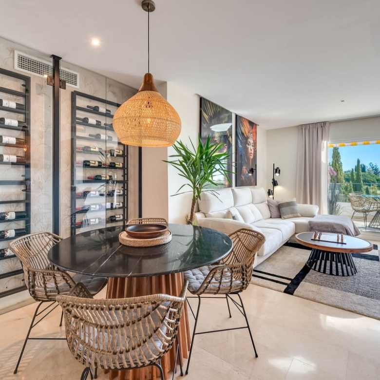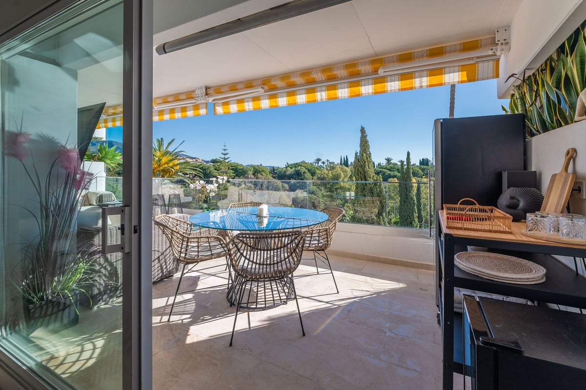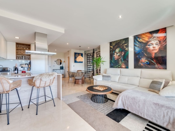 This bright apartment has been completely refurbished and is situated in the prestigious urbanization of Las Terrazas de Marbella Club on the Golden Mile of Marbella. The property boasts 129 m2 of built space and an additional 20 m2 terrace, located on the first floor of the building.