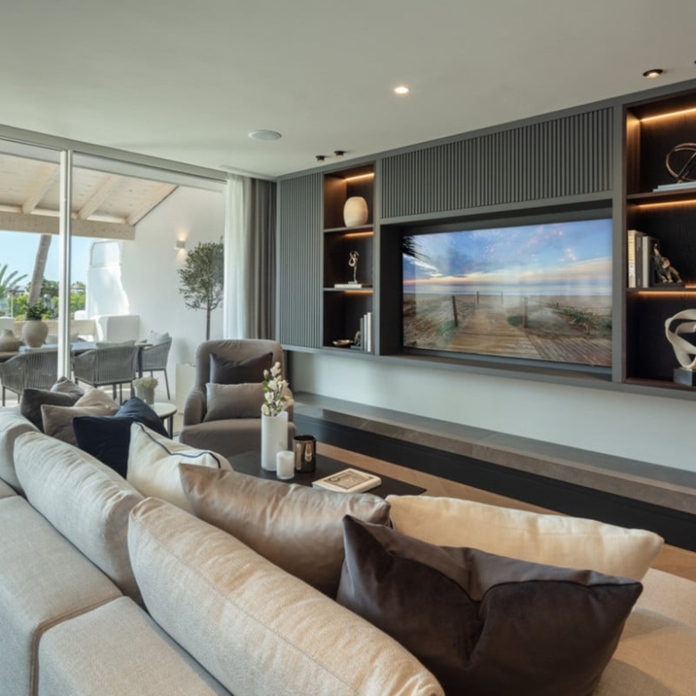 This stunning duplex penthouse is located in the prestigious Marina de Puente Romano, situated in the sought-after Marbella Golden Mile area of Marbella, Malaga. With its prime beachfront location, this property offers breathtaking views of the sea and the surrounding area.