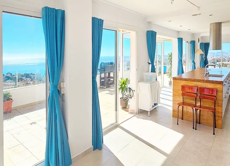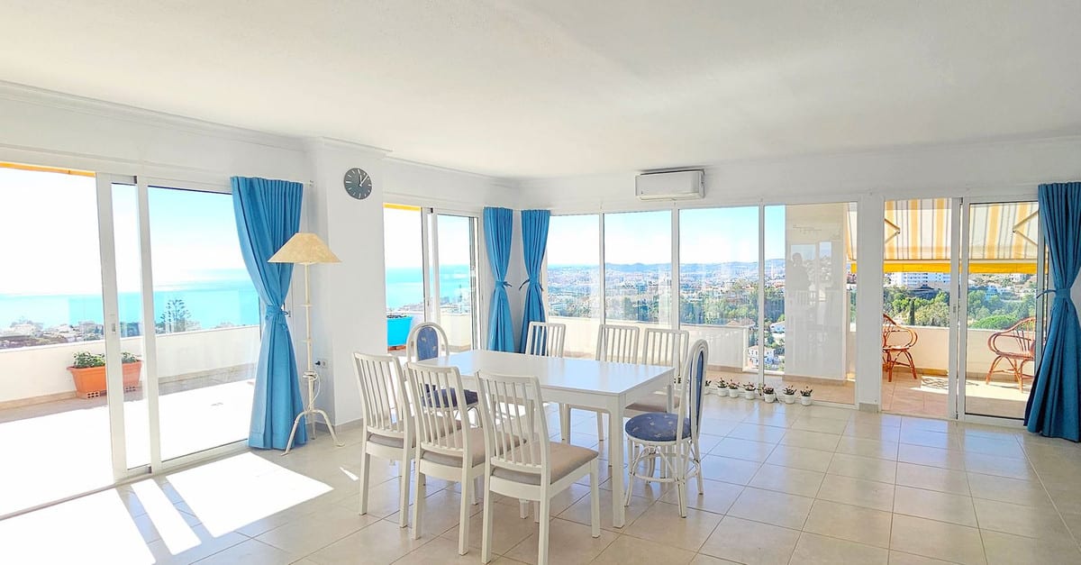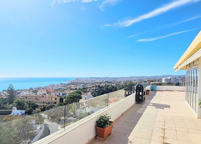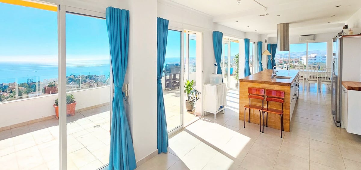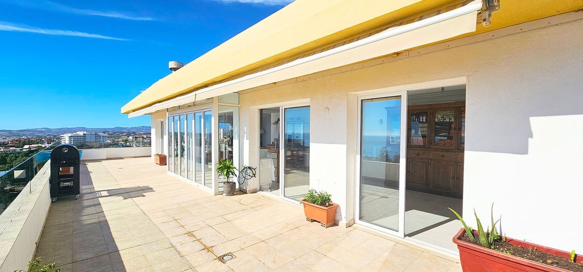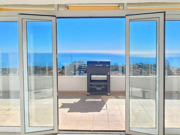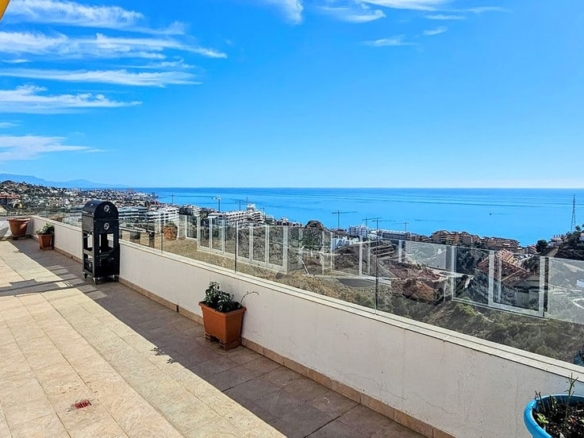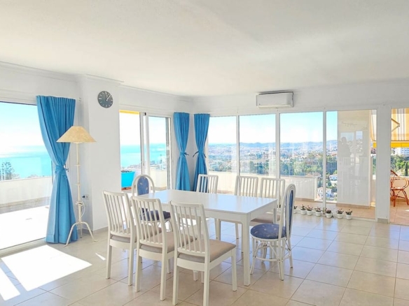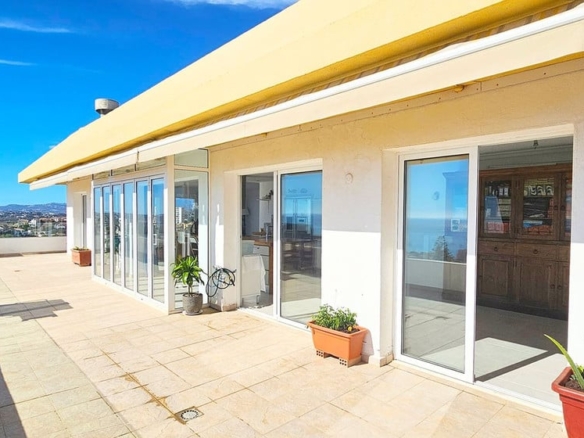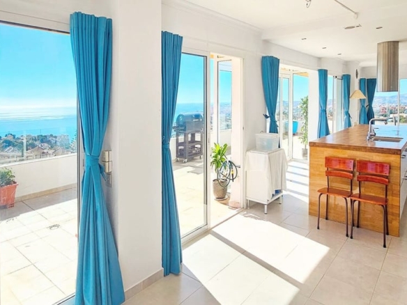 Stunning penthouse offering breathtaking panoramic coastal views, located just a short drive from the beach and in close proximity to the town, restaurants, and all conveniences.This three-bedroom penthouse emerged from the combination of two separate units, creating an exceptionally spacious lounge area. The recent refurbishment has transformed the apartment into an open and airy living space, where the kitchen, living, and dining areas seamlessly blend together. The large terrace provides the perfect vantage point to savor the picturesque views of the coastline.